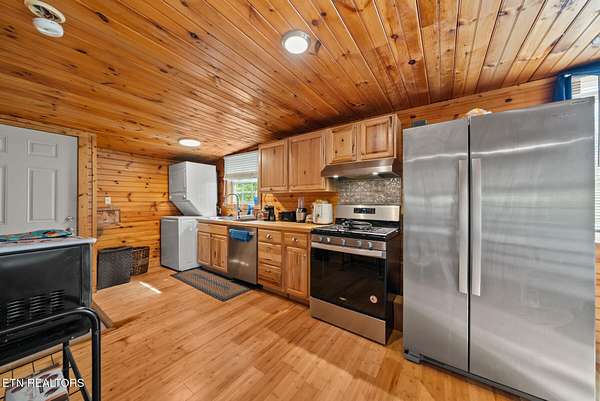 - Dishwasher, Disposal, Dryer, Gas Cooktop, Gas Range, Microwave, Range, Refrigerator, Self Cleaning Oven, Washer