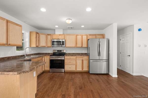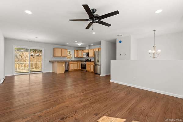 Discover this brand new, light-filled Raised Ranch ideally situated on 2.5 partially wooded acres. Enjoy seamless living with an open-concept main floor featuring beautiful hardwood floors in the kitchen, dining, and living areas, complemented by stainless steel appliances. Sliding glass doors open to a deck, perfect for entertaining. The primary suite boasts a full bath with an oversized walk-in shower, while two additional bedrooms share a full hall bath. The finished lower level expands your living space with a family room, half bath, and laundry. Amenities to include central air and two car garage. Conveniently located just minutes from shopping, Tymor park that offers a lake, trails and pool. Minutes to the Taconic and 15 minutes to Metro North train station in Pawling.