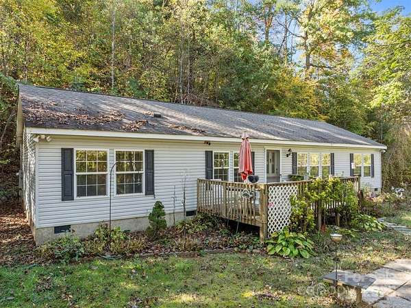 This is an incredible opportunity for any buyer! Located on a breathtaking drive down Pisgah Highway, rests this nearly 5 acre parcel. There is a huge garage shop at the base of the driveway that has totally level access to it. Up a slight climb the primary home sight features level usable yard space and a 3 bed 2 bath home. At the switchback in the finished driveway there is what appears to be an old logging road connection, right there is a level, potential build site and possibly more further up. The home itself is a 1620 square feet modular home with a 2001 build. It needs some TLC but is in overall good condition and was well maintained. Could be move in ready, mortgage worthy, no known major issues. Features a large primary suite and two well appointed bedrooms. It has a nice front deck and a covered carport area out back. Across Davis Chapel Road between 151 runs Stony Fork creek, it can be heard at the shop and throughout the primary build site. This property was not affected be Helene and is not in a flood plain.