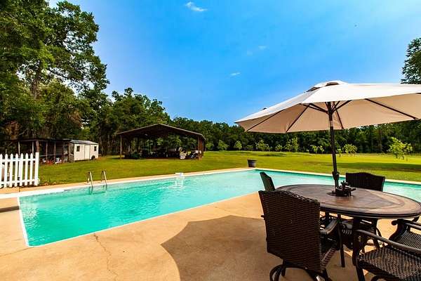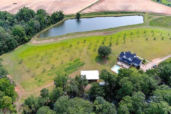 157 Acres of Rare Solitude on the Spring Creek in Colquitt, Georgia. Abundant wildlife including Deer, Turkey and Fishing on the creek or your 2.5 Acre Stocked Pond. Property includes a Valley 6 Tower Pivot, one 12 inch well and two six-inch wells, a large garden, 5-year-old pecan trees, a Generac that will run the entire home, two barns, an inground pool and a Dock for fishing in the creek. The interior of this four-bedroom home three and a half bath home blends rustic charm with modern comfort. The living room offers a wood burning stone fireplace that will warm the entire home, Tall ceilings, a wonderful kitchen with a dining area, A sanctuary of peace and possibilities for sure!