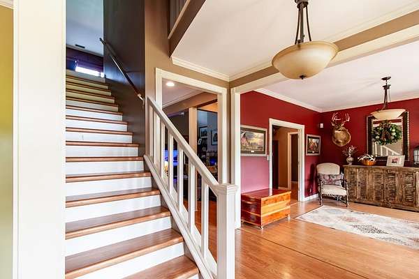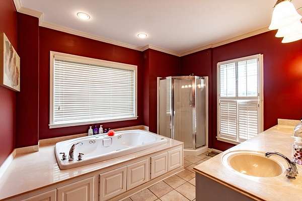 - Crown Moulding, Hard Surface, Lighting Recessed, Separate Shower Master, Specialty Ceilings, Walk-In Closets, Wide Baseboard