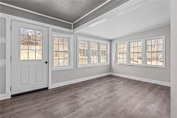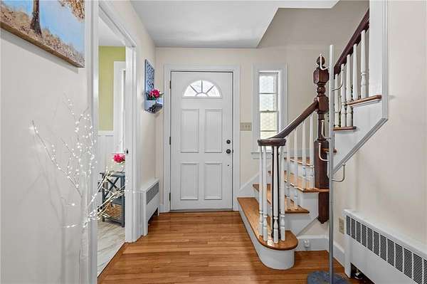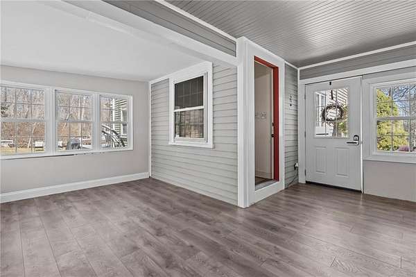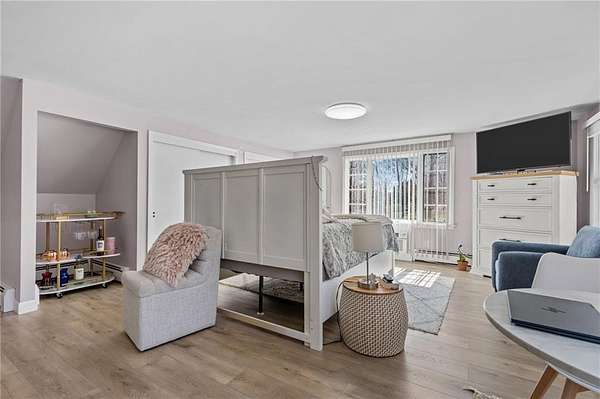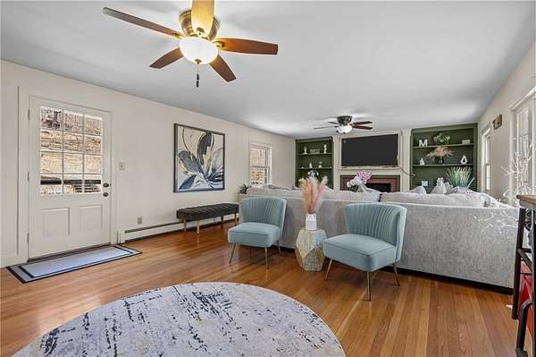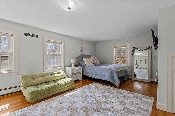 Welcome to this charming Cape Cod home set on 1.74 private acres, tucked back from the road with a long driveway creating a peaceful, secluded setting. Offering space, flexibility, and room to spread out, this property is ideal for buyers seeking privacy and functionality. Inside, you'll find hardwood floors, a spacious fireplaced living room, and a recently updated kitchen perfect for everyday living. A first-floor bedroom and full bath offer convenient single-level living, while the second floor features two additional rooms and another full bath. A standout feature is the finished studio space above the attached 2-car garage with its own full bath, offering incredible flexibility. The partially finished basement adds bonus space for a media room, office, or playroom. Enjoy the large deck overlooking the above-ground pool and expansive yard, perfect for entertaining or relaxing. Located minutes from Diamond Hill State Park and within the highly regarded Community Elementary School district, a National Blue Ribbon School. Home functions as a three-bedroom but is classified as a two-bedroom per city records; septic is designed for two-bedroom use.