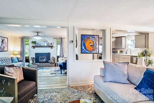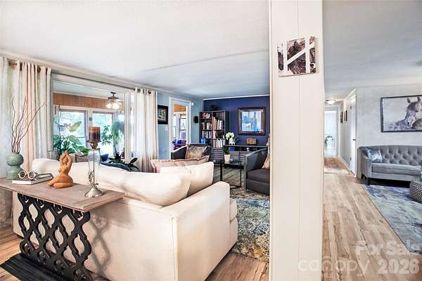 Tucked away at the end of a quiet dead-end drive, 74 Huntley Rd offers privacy, usable land, and an easygoing lifestyle just minutes from Asheville, Hendersonville, and the airport. Set on nearly 2 private acres, this property is ideal for buyers seeking a peaceful, animal-friendly setting without feeling remote. The home features single-level living with two bedrooms, which includes a spacious primary suite with private deck access. A screened porch creates the perfect extension of the living space-ideal for morning coffee, evening relaxation, or enjoying the surrounding nature year-round. Outdoor enthusiasts and gardeners will appreciate the fenced garden area, room for chickens or other animals, generous storage, and ample parking with a double carport. The property layout also offers potential space for an additional dwelling, making it well-suited for extended family, guest accommodations, or future flexibility. Whether you're looking for a full-time residence, mountain retreat, or a private base close to everything Western North Carolina has to offer, this property delivers privacy, practicality, and lifestyle flexibility in one unique package. Furnishings, decor, linens, and dishes are available for purchase. *Please note: due to the age of the manufactured home, this property will likely need to be a cash purchase. Please do not enter the driveway without an appointment.