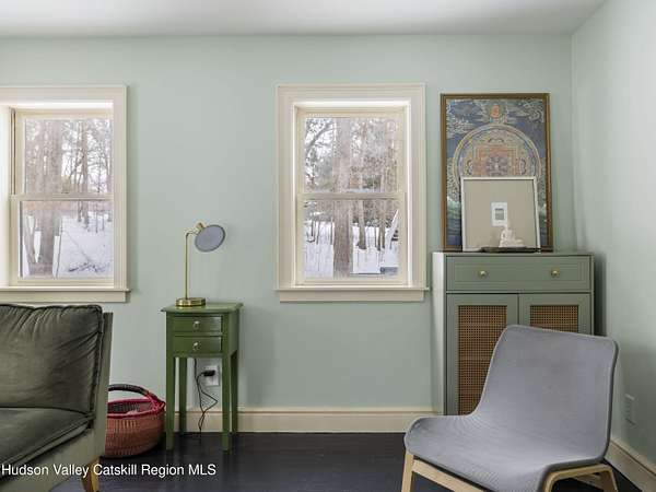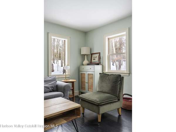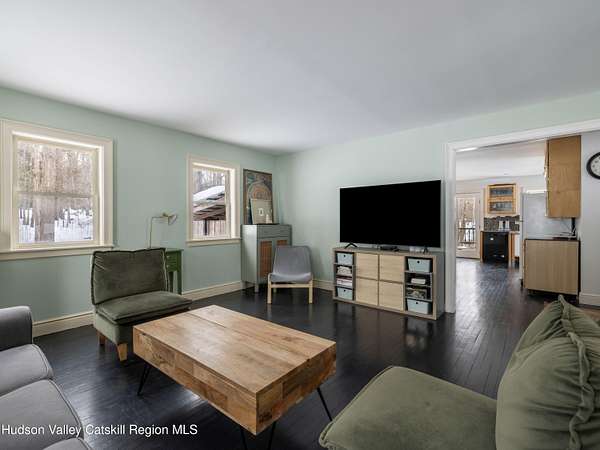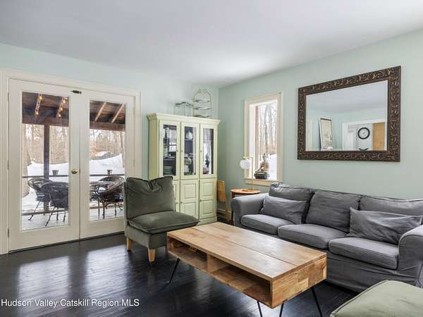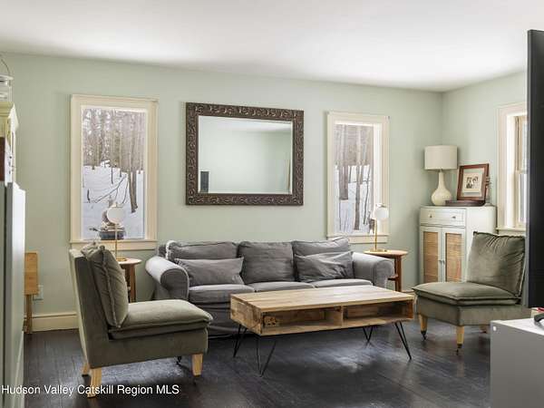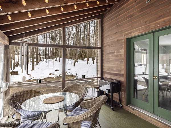Privately set on a dead-end road in a peaceful wooded setting, 74 Lemon Lane is a cypress-clad haven nestled on 2.92 acres of natural beauty. Inside, the home unfolds with a clean, airy aesthetic defined by hardwood floors throughout, soft natural light, and a distinctly zen-like ambiance. The spacious living room provides a warm gathering space, while the eat-in kitchen is both functional and inviting for everyday living and relaxed entertaining. Graceful architectural details, including a massive arched center window, enhance the home's quiet sophistication and its connection to the surrounding landscape. The primary bedroom features vaulted ceilings that create an open, serene retreat, complemented by two additional bedrooms and a beautifully updated full bathroom. Outdoor living is equally appealing, with a screened porch perfect for quiet mornings and a large side deck ideal for dining, lounging, or simply enjoying the surrounding woods throughout the seasons. Blending simplicity with natural materials and a calming interior sensibility, 74 Lemon Lane offers a thoughtfully designed Hudson Valley escape just minutes from the villages of Rhinebeck and Red Hook and the scenic campus of Bard College. A 3D Walkthrough Tour is available in the digital Lookbook or by request.