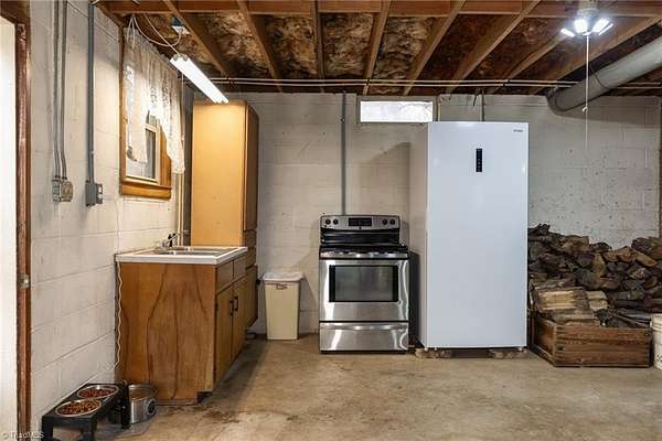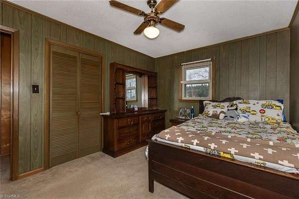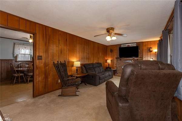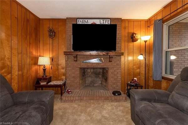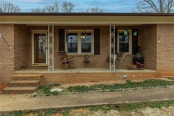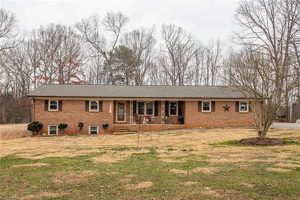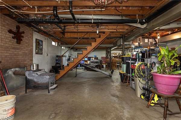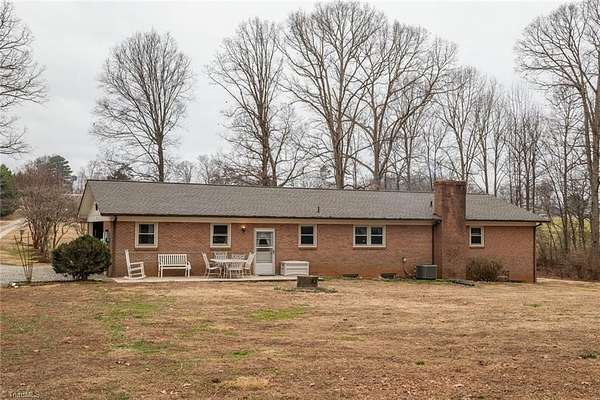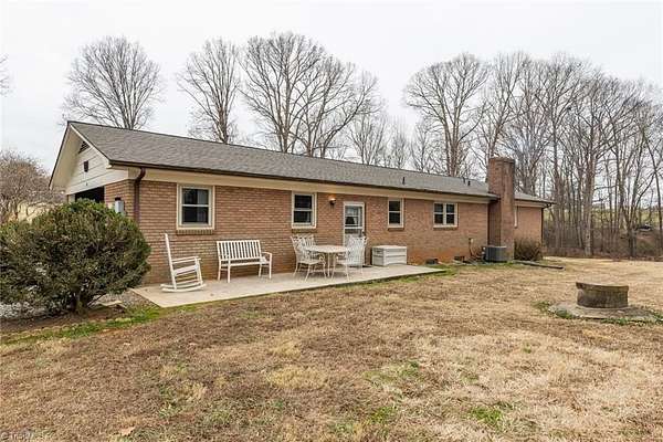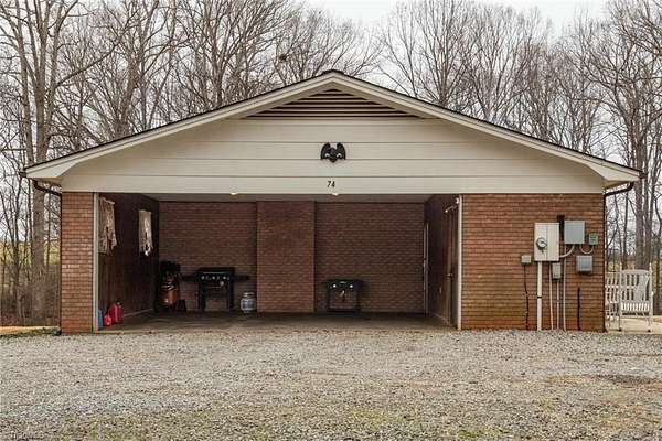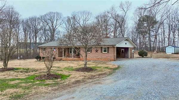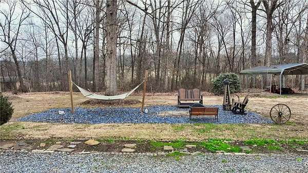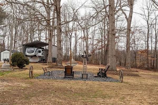 This property offers a peaceful, country-style setting with plenty of space to relax and enjoy the outdoors. The home is a single-story brick ranch, set back from the road: accessed by a gravel driveway that creates a welcoming sense of arrival. Surrounded by mature hardwood trees,with a lawn that provides both shade & open space. The front of the home features simple, classic landscaping with natural mulch beds. In the yard, the property really shines with a thoughtfully designed fire pit area with Adirondack seating & a gravel base creates the perfect gathering spot for entertaining or quiet evenings. Nearby, a covered structure provides convenient storage for an RV, camper, or additional equipment, along with a separate storage building for added functionality.Overall. Wood Burning Stove in basement heats the basement.:this home combines the comfort of single-level living with the charm of a rural setting-ideal for those looking for privacy and inviting outdoor spaces.