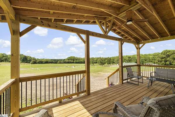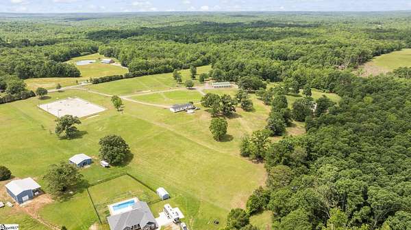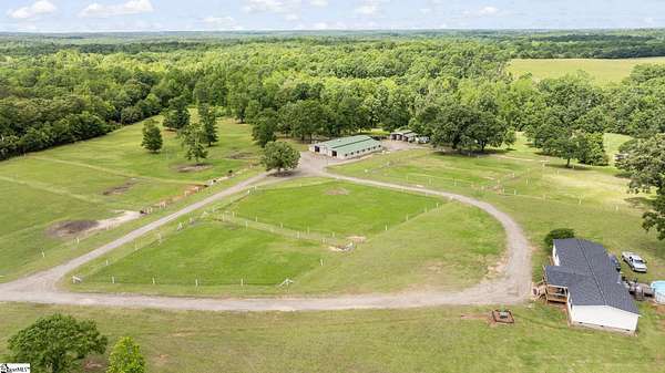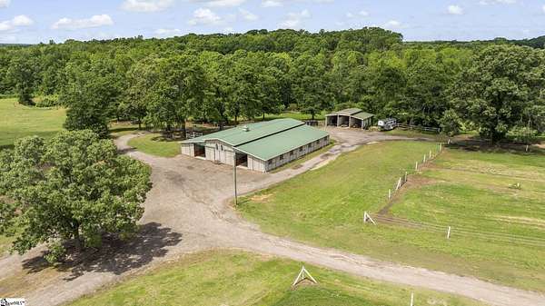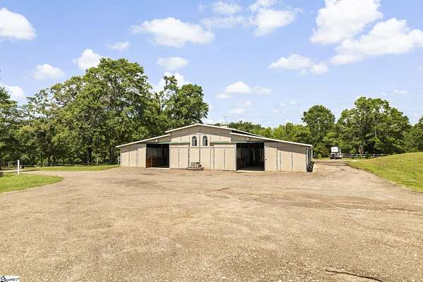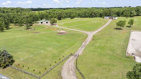 30 Acres, 22 stall equestrian facility in Fountain Inn, SC! Welcome to 74 Reining Way - a rare and remarkable equestrian estate set on 30 scenic acres with stunning views. This premier horse property offers an incredible opportunity for equestrian enthusiasts, boarding operations, or riding school ventures, all while enjoying a spacious, well-appointed residence. The heart of the property features a professionally designed Barnmaster barn with 22 12x12 stalls and one oversized 24x12 stalls, complete with automatic fly misters, hot/cold wash racks, 2 tack rooms, a heated bathroom and office. With multiple pastures and paddocks, riding trail, and a 150x250 ft lighted arena equipped with a drainage system for year-round use, and second smaller arena with lights.Every inch of this facility is thoughtfully tailored for the care, training, and enjoyment of horses. The charming 2128 sq ft, 4 bed/2 bath double-wide home (2011) boasts an open layout, LVP flooring, fireplace, spacious kitchen with island seating, and an electric water heater. Relax on the covered porch or take a dip in the above-ground pool while taking in the peaceful views of rolling pastures and wooded surroundings. This turnkey horse farm offers room to grow and capitalize on its income potential with ample acreage and infrastructure. Whether you're seeking a private equestrian haven or a profitable boarding/training business, 74 Reining Way delivers the best of both worlds in an unbeatable location. Don't miss out on this dream property! Call Roger Miller for your showing today! 864-680-6934