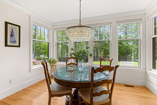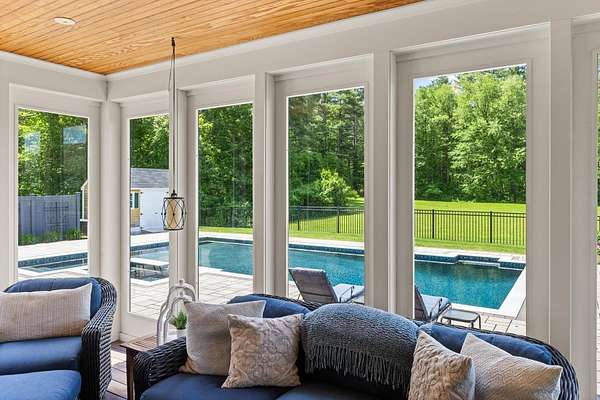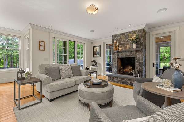 ELITE NEIGHBORHOOD PAIRED WITH UNMATCHED WATERFRONT ACCESS AND THE HIGHEST QUALITY CRAFTSMANSHIP! Privately set on 3.6 lush acres at the confluence of Fresh Creek and the Cocheco River, this exceptional waterfront estate offers refined living in one of the Seacoast's most coveted neighborhoods. The shingle-style Fiorentino-designed home spans 5,247 sq ft featuring 5 bedrooms, 5 baths, a three-season sunroom, formal and casual dining spaces, a private executive office suite, and a rec room with wet bar and covered balcony. Designed for both comfort and elevated entertaining, the outdoor setting is equally impressive. Enjoy tranquil sunrises over Fresh Creek, unwind by the heated saltwater pool with integrated spa and Pebble Tec finish, or gather around the west-facing gas firepit for sunset views. Looking for something a little more rustic?... there is a perfect campsite by the water's edge with wood firepit, and access to water and electric! A private dock provides direct access to New Hampshire’s inland coast and the Atlantic Ocean beyond. Inside, the home showcases exceptional craftsmanship and high-end finishes, including custom cabinetry and built-ins by Jewett Farms, Sub-Zero and Wolf appliances, red birch flooring, twin wood-burning fireplaces, and premium fixtures by Hubbardton Forge and Kohler. Additional features include a heated three-car garage with dog wash, geothermal HVAC, spray foam insulation, and a standby generator for year-round efficiency and peace of mind. Need more space or room for longer-term guests? The lot was pre-planned for a carriage house or barn with living quarters. Ideally located on prestigious Saddle Trail Drive, just minutes to Cochecho Country Club, Berwick Academy, downtown Portsmouth, and the Seacoast’s renowned beaches and dining. It would take years to design and build a home of this caliber. Pair that with pristine grounds, exceptional water views and access to NH's inland coast, and you will not find a better investment!