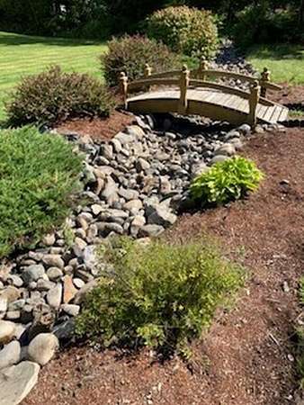 Situated in one of Hampden's most desirable neighborhoods, Town Farm, this contemporary Colonial is the home you've been waiting for. Gleaming hardwood floors flow throughout the main level, with plush carpeting reserved for the bedrooms, creating a warm and comfortable retreat. Meticulously maintained and truly move-in ready, this home offers both style and peace of mind. The three generously sized bedrooms provide ample closet space, while the bathrooms are fresh, stylish, and recently updated. The inviting kitchen is the heart of the home, featuring rich hickory cabinetry, pantry cabinets thoughtfully framing the refrigerator for a touch of designer flair, an elevated seating area, and stainless steel appliances--perfect for everyday living and entertaining alike. A generous mudroom entry provides the ideal drop zone for busy households, keeping everyday life organized and efficient. The daylight walkout basement offers endless possibilities for additional living space, a home gym, recreation area, or guest suite, complete with double-door access to the backyard. Car enthusiasts and hobbyists alike will appreciate the impressive 2.5-car garage featuring a durable epoxy floor and ample room for storage, tools, and equipment. Outside, the property offers exceptional privacy. A spacious front yard is set along a tree-lined street, while the backyard feels like your own private park. Custom landscaping, a charming bridge over a seasonal stream, and a wooded buffer create a serene oasis to enjoy year-round. Conveniently located just minutes from award-winning schools, as well as nearby hospitals, universities, and shopping, this home offers the perfect blend of tranquility and accessibility -- and so much more.