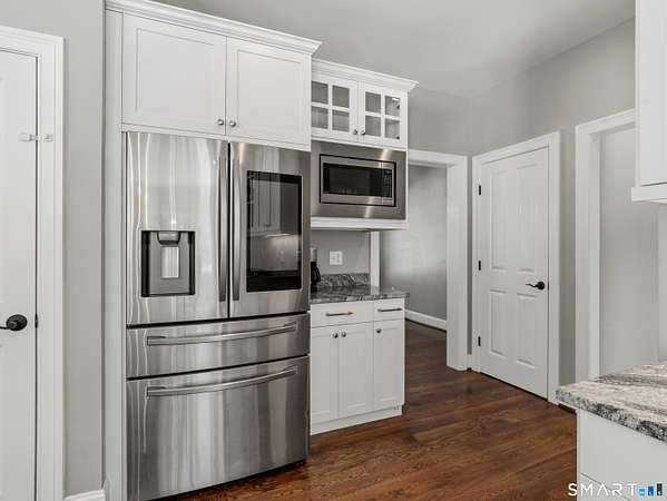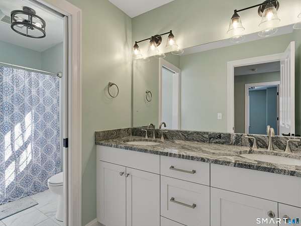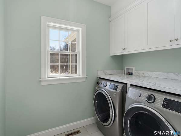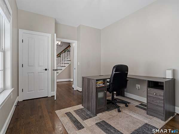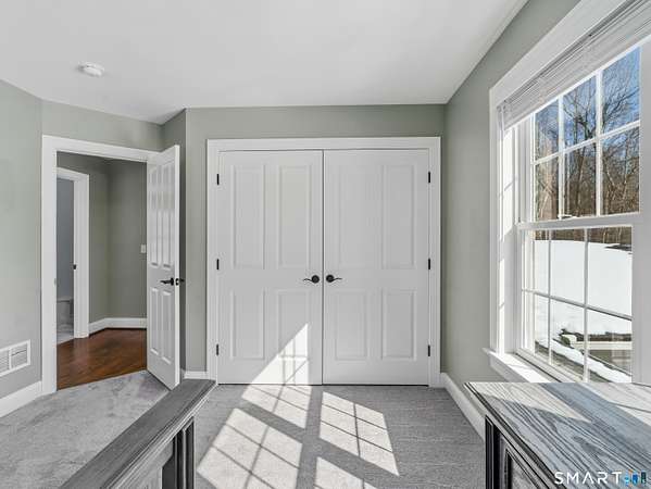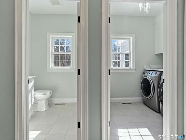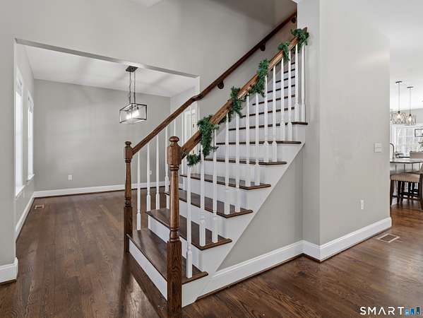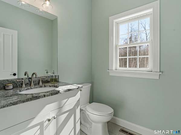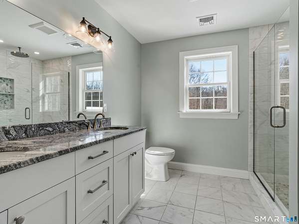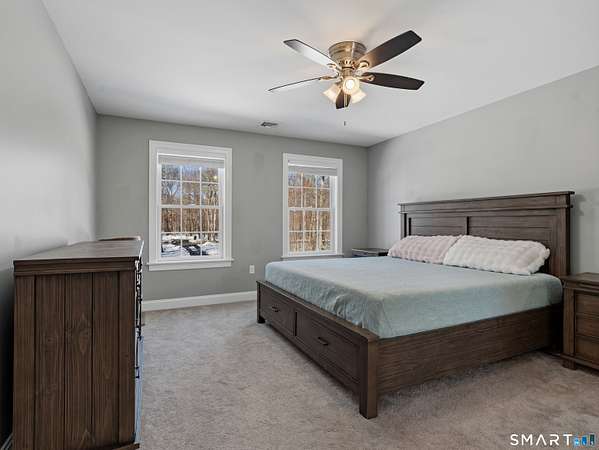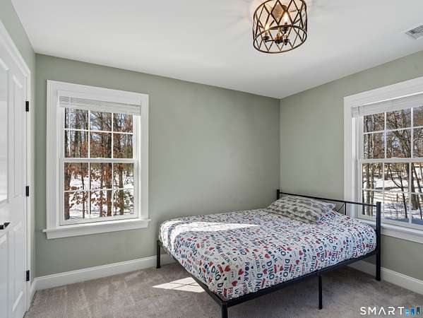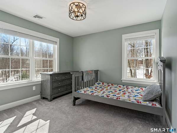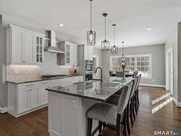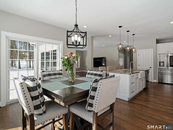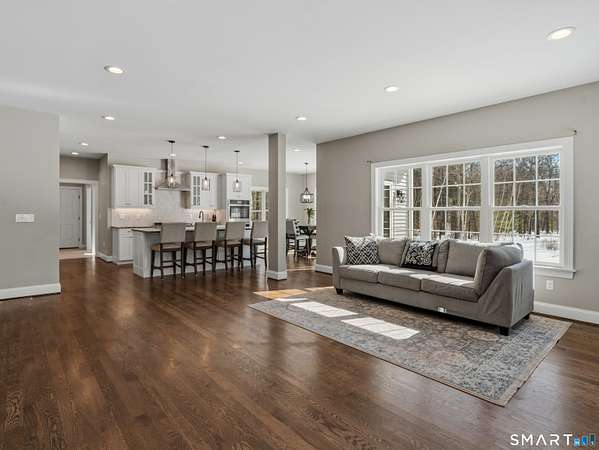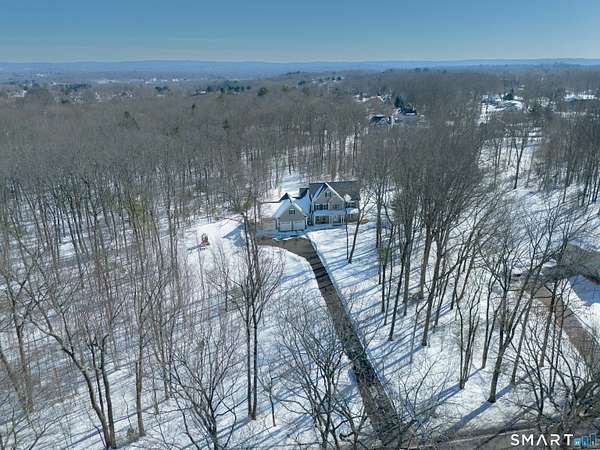 Welcome to this stunning 2,759 sq ft single-family home built in 2022, offering modern design, quality finishes, and a bright, open layout in a private Ellington setting near the South Windsor line. Step inside to soaring ceilings, recessed lighting, and an abundance of natural light that fills the open-concept main level. Beautiful hardwood floors flow seamlessly from the living room into the spacious kitchen, creating the perfect layout for everyday living and entertaining. The living room features a cozy gas fireplace and large windows with views of the backyard. The kitchen is truly the heart of the home, complete with granite countertops, stainless steel appliances, double ovens, modern light fixtures, and a large center island with seating. The adjacent dining area offers sliders leading to the patio and backyard, blending indoor and outdoor living with ease. A convenient half bath is located just off the kitchen, along with the laundry room. Upstairs, you'll find four generously sized, carpeted bedrooms with large closets, including a spacious primary suite featuring a full bathroom and walk-in closet. An additional full bathroom in the hallway provides comfort and functionality for family and guests. Additional highlights include a three-car garage, expansive backyard space, and a private setting with aerial views showcasing cleared areas ready to explore in the warmer months. Modern, bright, and beautifully maintained - this move-in ready home is not to be missed!
