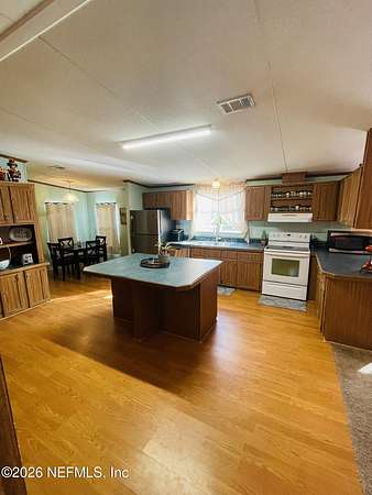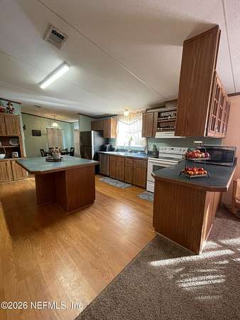 Discover a rare opportunity to own a peaceful slice of countryside living right in the heart of the county. This 4-bedroom, 2-bathroom mobile home sits on a spacious 2.66 acres and offers both comfort and flexibility. The home features a brand-new metal roof and is serviced by a private well with a water softener system. The fully fenced property includes an electric gate for added security and privacy, with ample space to park a boat or RV--or even build your dream pool. With no HOA or CDD fees, you'll enjoy the freedom to truly make this property your own. Zoned Open Rural, the land allows for a variety of uses, including agricultural or horticultural activities--perfect for horses, livestock, or hobby farming. Additional highlights include a covered carport that doubles as a functional workspace and a storage container included in the sale. Whether you're looking to move in, invest, or build new, this AS-IS property presents an exceptional opportunity with endless potential.