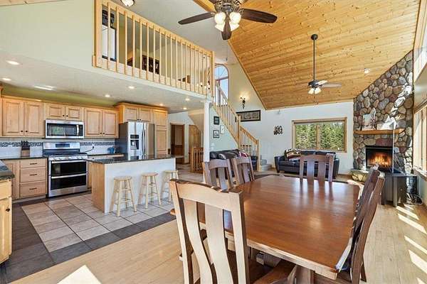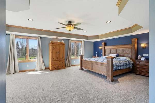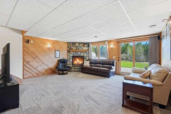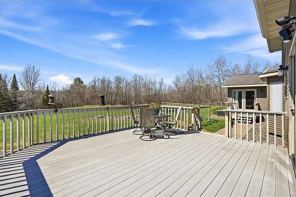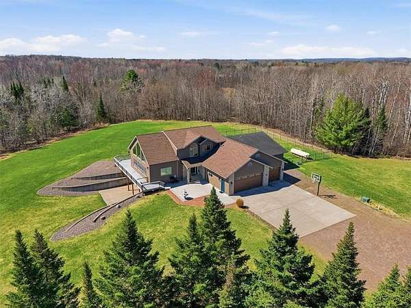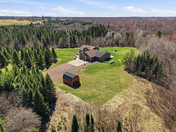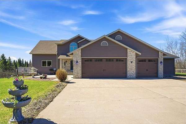 Welcome to your private retreat just outside of Cornell, Wisconsin—where nearly 4,000 finished square feet meets over 25 acres of wooded beauty, mature pine trees, and open green space. This 5-bedroom, 4-bathroom home offers the perfect balance of space, function, and privacy. With approximately 3 acres of manicured lawn surrounded by woods, you’ll enjoy both usability and seclusion—whether you're relaxing on the expansive wraparound deck or taking in the natural surroundings (yes, even bow hunting right from your own property).Inside, the home is equally impressive. The kitchen has been updated with granite countertops, tile backsplash, and refaced all maple cabinetry, complemented by fresh paint, new carpet in select areas, and updated lighting. The main floor primary ensuite is oversized, offering a true private retreat, while a huge dedicated office provides the perfect work-from-home setup with natural light and peaceful views. You’ll also find a fully finished walkout lower level, multiple living spaces, and abundant storage throughout, making this home as practical as it is beautiful. A new 25x16 Tuff Shed adds even more flexibility for storage, hobbies, or equipment. New EV charger in the garage for your electric vehicle charging needs. Seller is including numerous personal property items, including Side by Side, riding lawn mower, and snowblower, along with furniture, etc. See supplement list. Outdoor enthusiasts will love being just minutes from Brunet Island State Park and the Old Abe State Trail for year-round recreation. For everyday convenience, you’re a short drive to Chippewa Falls—featuring ample shopping, dining, and amenities while still enjoying the peace of country living. This is more than a home—it’s a lifestyle. Space, privacy, and nearly 4,000 sq ft of opportunity… all in one incredible property. You won't want to miss this one!