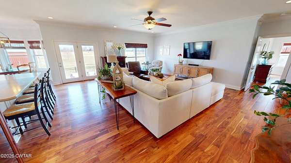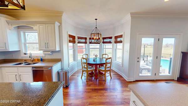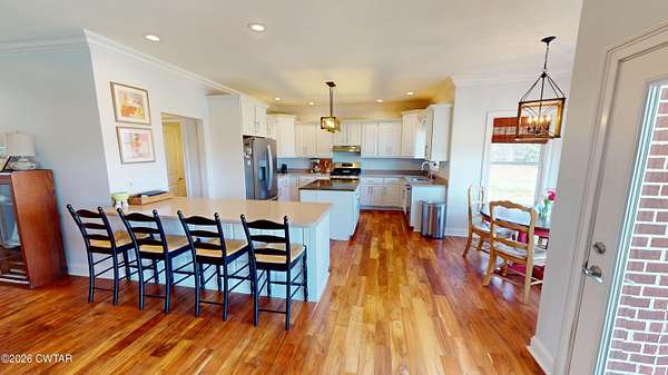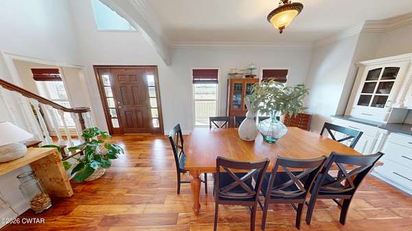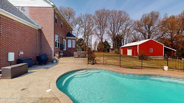 Wow! This stunning home has it all-space, style, and privacy. Inside, you'll love the open-concept design, beautiful hardwood floors, and a bright, inviting kitchen with white cabinetry, stainless steel appliances, and a large island perfect for gathering. The main-level primary suite offers comfort and convenience, along with a home office, formal dining room, and laundry area. Upstairs features four additional bedrooms and two bathrooms, giving everyone their own space. Step outside to your own private retreat with an in-ground pool, shop, extra storage building, and 9 acres to enjoy-all with no city taxes! Don't miss your chance to own this incredible property! Up to 9 additional acres can be purchased separately. Wow! This stunning home has it all-space, style, and privacy. . Step outside to your own private retreat with an in-ground pool, shop, extra storage building, and 9 acres to enjoy-all with no city taxes! Up to 9 additional acres can be purchased separately.