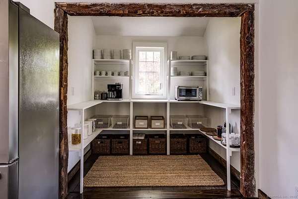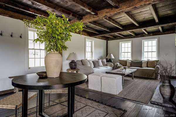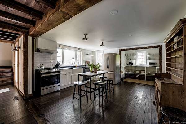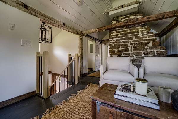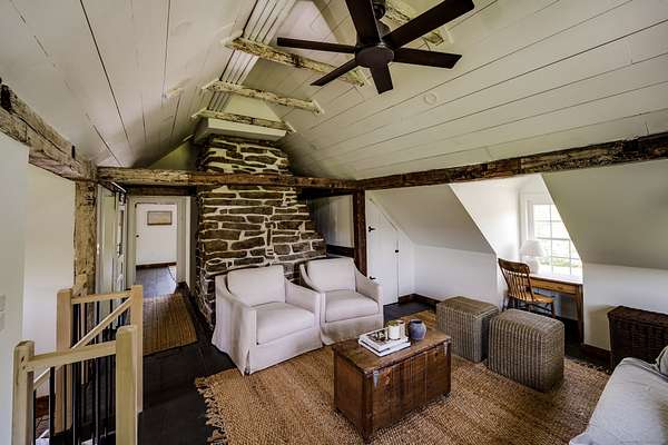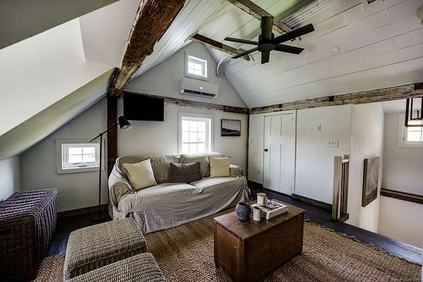 Beautifully restored 1780s farmhouse set on 14 peaceful acres, offering authentic New England charm with thoughtful modern updates. Stunning exposed wood beams and wide-plank floors highlight the home's character, while a gas-log fireplace creates a warm and inviting focal point. Renovated with sustainability and historical accuracy in mind, the home features reclaimed original trim and salvaged antique doors. Inside, enjoy modern conveniences such as A/C, flat screens, a spacious laundry room, and a brilliant pantry with a built-in coffee station. A wide porch provides the perfect setting for relaxing and taking in the tranquil surroundings. Available for rent January 15th through April. All utilities included. This rare short-term opportunity allows you to experience a beautifully restored historic farmhouse with every comfort at your fingertips.