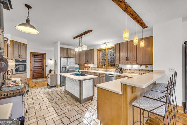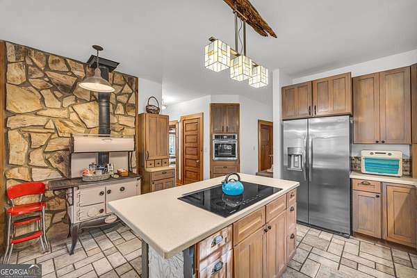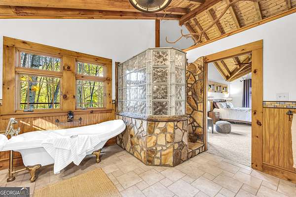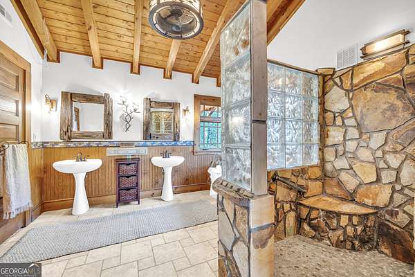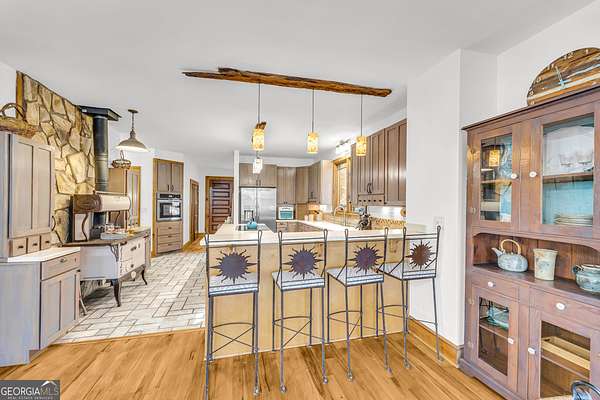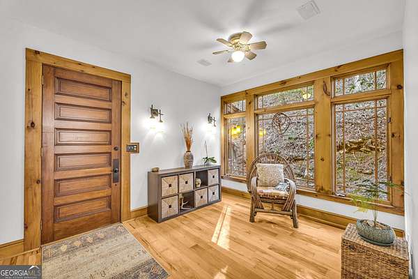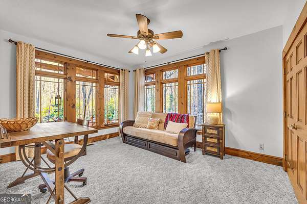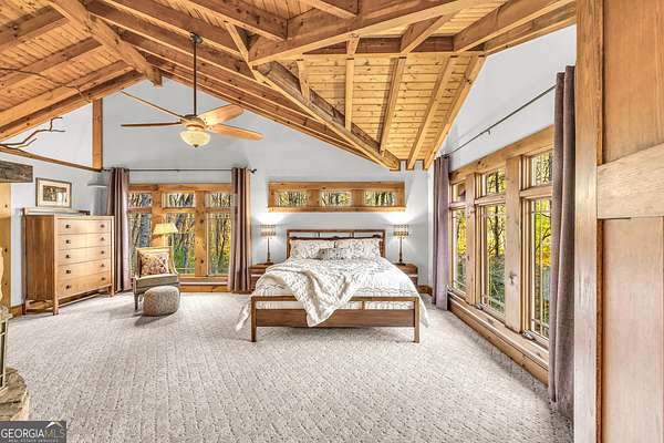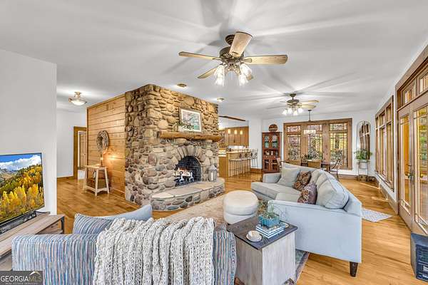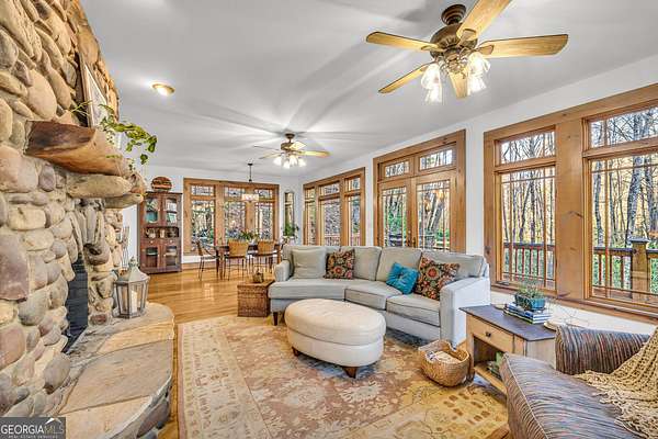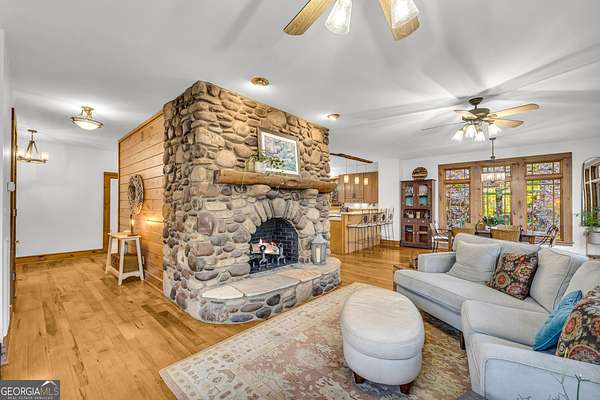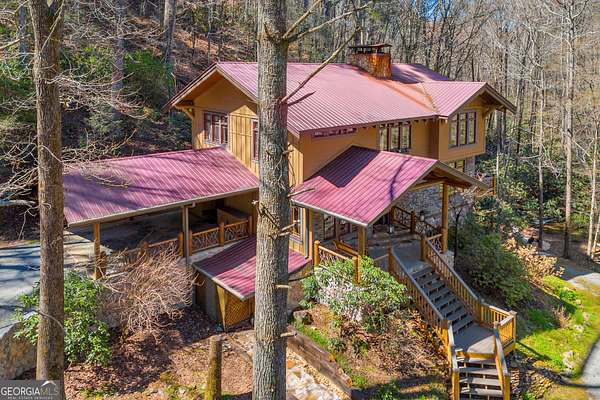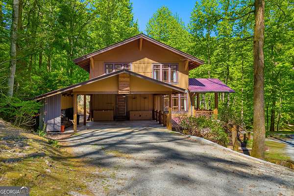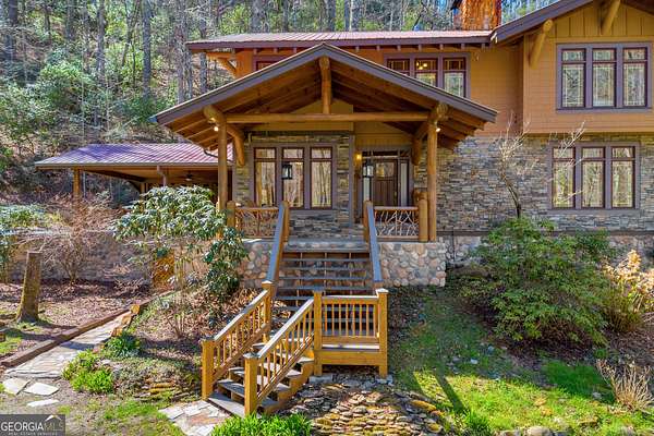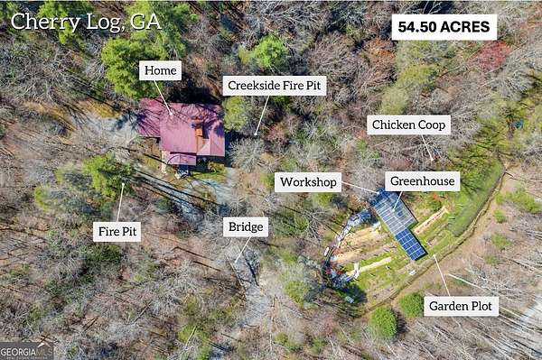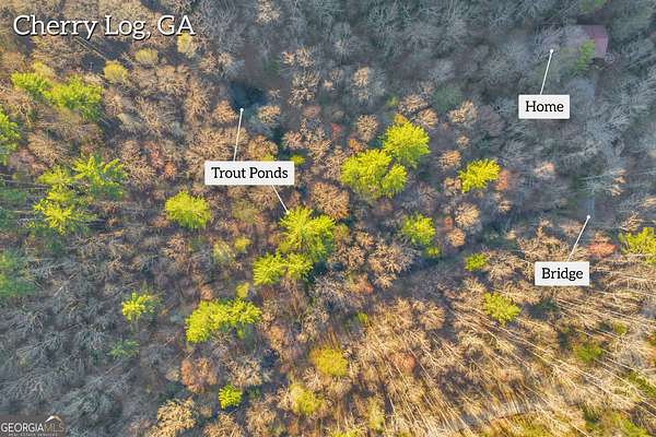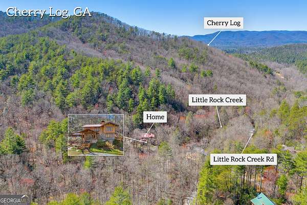 Creekfront Sustainable Mountain Sanctuary on 50+ Private Acres - Escape to a world of privacy, natural abundance, and self-sufficient living on this extraordinary 50+ acre estate bordering the Chattahoochee National Forest and Rich Mountain Wildlife Management Area. Designed for both comfort and conservation, this rare property combines timeless mountain beauty with true sustainability-where modern efficiency meets off-grid capability. The home overlooks the tumbling waters of Little Rock Creek, cascading through the property for over 1,500 feet with private ownership on both sides, plus two spring-fed ponds. Historic logging trails wind through the acreage, ideal for hiking, horseback riding, or exploring by ATV, while the creekside fire circle invites starlit gatherings surrounded by nature's peace. Inside, over 4,000 sq ft of custom craftsmanship blends rustic charm with thoughtful design-three stone fireplaces, warm wood accents, and walls of glass framing forest and water views. The chef's kitchen with new stainless appliances and open living areas make entertaining effortless, while the finished terrace level offers ideal guest, in-law, or rental space. The property's eco-conscious systems-solar panels with battery backup, a gravity-fed spring water supply, and efficient propane/wood hybrid heat-provide year-round comfort and energy independence. For gardeners, a fenced organic garden, greenhouse, and established fruit & berry orchards invite a farm-to-table lifestyle. Great location! Only 2 miles off Hwy 515, just 12 minutes to Blue Ridge and 14 to Ellijay. See "Special Features" list-this property is a North Georgia homestead masterpiece where sustainability and serenity meet.