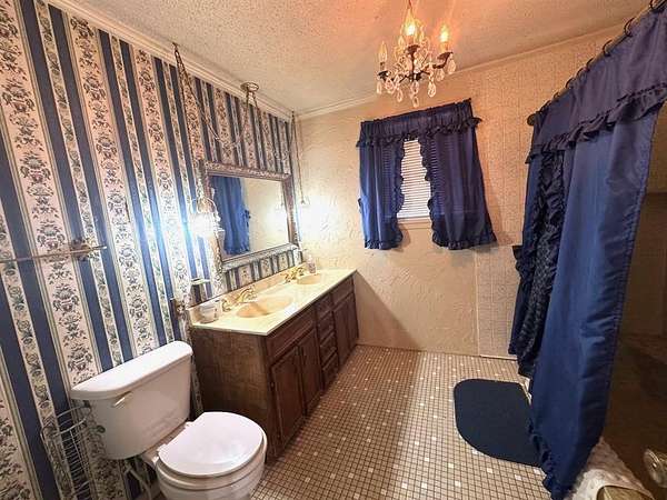 Need a home with character? Welcome to this charming, built-to-last five-bedroom, three-bath residence situated on over nineteen picturesque acres! Surrounded by mature trees, this property includes a seasonal tank, offering ample space for livestock or peaceful outdoor living. Inside, the spacious living room features a cozy wood-burning fireplace, while the kitchen provides abundant cabinetry for all your essentials. Three bedrooms rest on the main level, with two additional rooms upstairs that open to a balcony accented by a striking iron railing. The primary suite, located downstairs, showcases a romantic fireplace, a bath with tub-shower combination, plus double sinks. Each guest bath includes a stylish stand-up shower. Exquisite wood crown molding highlights the craftsmanship throughout, creating timeless charm. Outside awaits multiple storage sheds, a Quonset hut, a three-car carport, plus a large pool ready for restoration into an entertainer's dream. The land itself is breathtaking--perfect for nature walks, livestock, or quiet enjoyment of the countryside. This property invites your personal touch to make it truly shine. Bring all offers; the seller is motivated!