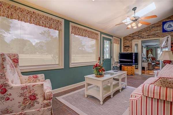 Very Private! Beautiful 4 sides Brick home on acreage w/ long private paved driveway! Rocking Chair front porch, Stunnning Dining Rm seats 12+ Spacious Family rm w/ Fireplace. Kit Boasts Granite counters, Double ovens & Breakfast area. Sun porch w/Wall of windows & sep Heat/AC. Attached 2 car garage plus Separate All brick 2 CAR Garage & Workshop/ Man Cave. AND another garage for RV & Boat! PLus shed for implements. House Basemnt includes Boat door, small workshop & Storage. Award winning schools, and min to I-20. Feels like country but conveniently located! Less than 30 min to Altanta.