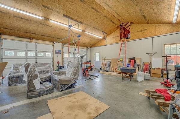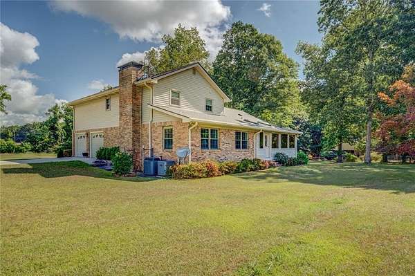Hidden Oasis! Private Beautiful UPDATED 4 sides Brick home on acreage w/ Workshop & RV parking; Long private paved driveway leads to Rocking Chair front porch! Stunning Dining Rm seats 12+! Great rm w/brick Firepl. Kit Boasts Granite counters, Double ovens & Breakfast area Overlooks Great Rm. Sun porch w/Wall of windows! Owners BR w/private BA; Attached 2 car garage & Sep All brick Workshop/Man Cave. Enclosed RV & Boat Parking! Part Basemnt includes Boat door, small workshop & Storage. Award winning schools, and min to I-20, Shopping & Restaurants. Country quiet but conveniently located! Less than 30 min to Atlanta.
