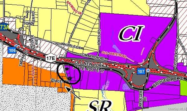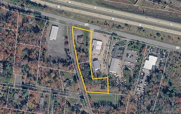 Strategic redevelopment opportunity in the southern part of the Town of Thompson offers favorable Commercial Industrial zoning and unlimited potential. This amazing corner property boasts extreme high visibility and a high traffic count. Directly facing NYS Rt 17/ Interstate 86 delivers the exposure that will surely make your business flourish. Large frontage of 850+/- feet on two roads makes this level land a perfect choice for development and offers terrific access for all types of vehicles, machines and parking. Located between highway exits 106 and 107, this prime spot offers added appeal. Active businesses in the immediate vicinity include tractor, truck and auto rentals and dealerships, professional offices and utility companies. Listing consists of two lots totaling 2.24+/- acres. One lot fronts on Bridgeville Road (Old Rt 17) and has a mixed-use building currently rented and used for storage. Total square footage is 3250+ not including a spacious breezeway that connects the two buildings which are a 3 BR house plus a small warehouse with overhead door. Front parcel is already cleared, and the back vacant lot which fronts on Southwoods Drive is wooded. Combine the two for your project or develop them both separately. Near to Crystal Run Healthcare, Resorts World Casino, Shopping, restaurants, big box stores, Village of Monticello, Holiday Mountain Fun Park and many other area attractions, services and bustling communities. Zoning chart is attached in docs.
