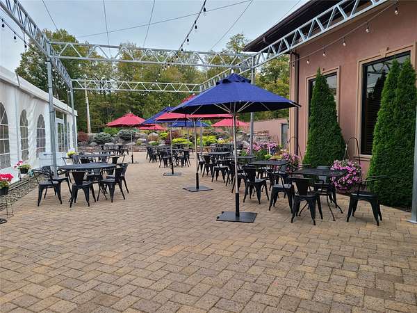 Location, location, location... Strategically positioned former restaurant, wedding/event venue and catering facility is fully equipped and turnkey. With parking for 250 and seating for hundreds this is unsurpassed potential! Super high visibility, high traffic, and easy accessibility with frontage on two busy roads, the location can't be beat! Building and signage are extremely visible sitting up high from the road and fronting with 1200+ feet of exposure directly on US Route 209 and 1100+ feet on Old Route 209. This substantial 5.9+/- acre property is backed by Tractor Supply, next to Walmart, and across from a facility that employs over 600 people. The restaurant building is equipped with sprinkler system, alarm system, central AC, offers over 6000 SF on main level and has several dining rooms, large bar, and a beautiful private wedding suite with restrooms and lounging space. The second level offers additional square footage with offices, storage, and restroom. There is no lack of storage with exterior containers for seasonal items along with plenty of interior space and shelving for everything you will need. The offer includes walk ins, fully equipped kitchen, tables, chairs, tableware, full bar, glassware, TVs, and more (inventory list available). Icing on the cake is a heated 8000 SF event tent decked out for the fanciest of fests with chandeliers, wet bar and dance floor. Opportunity is knocking!