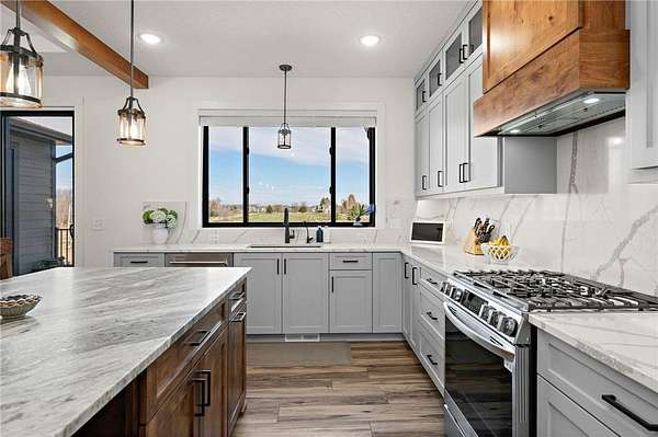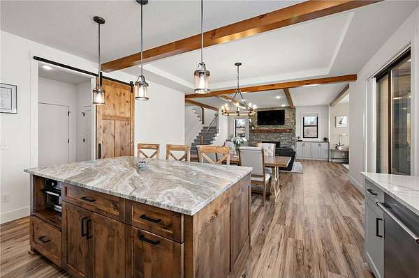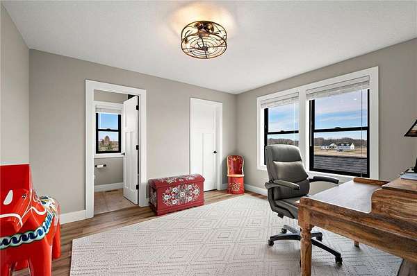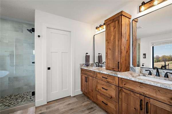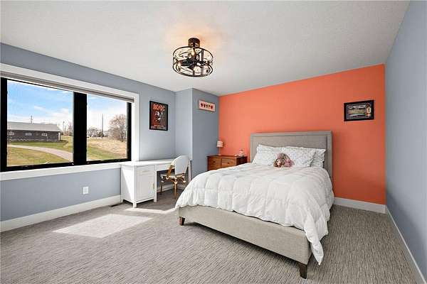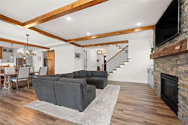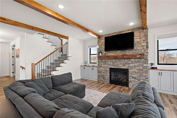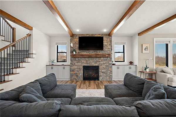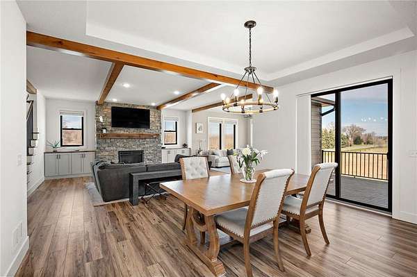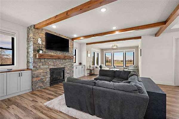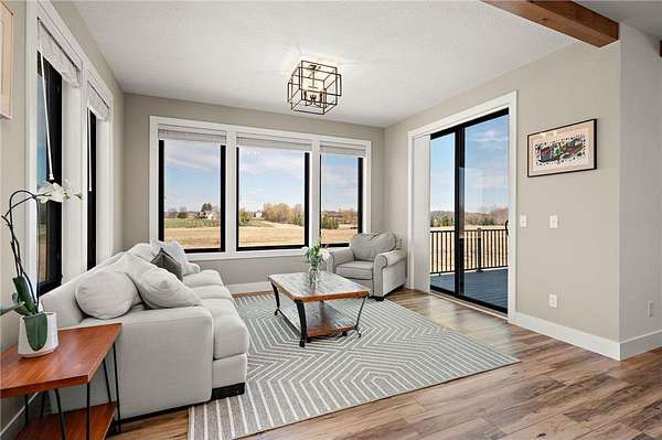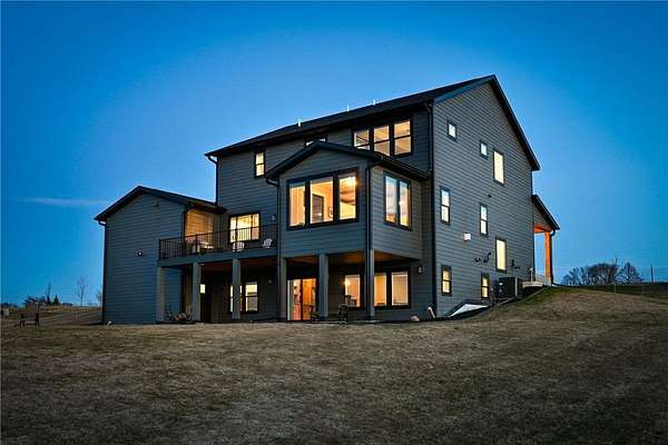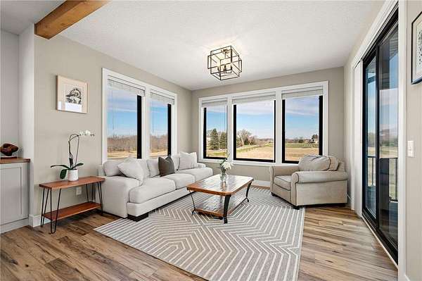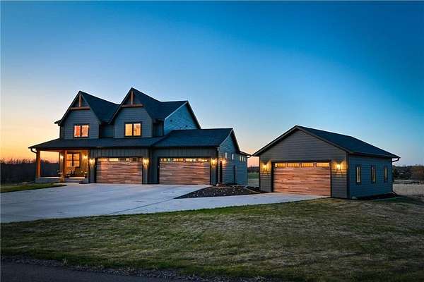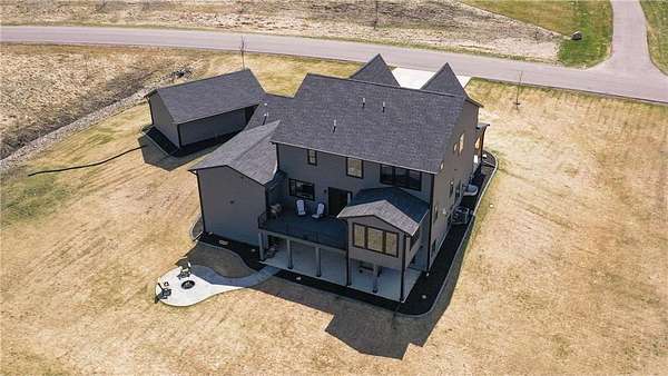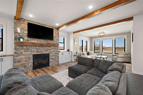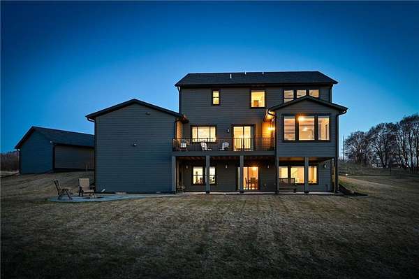 Designed for everyday comfort, casual luxury, and exceptional entertaining, this 5 bedroom 4.5 bathroom home thoughtfully includes many upgrades. The main level features an open-concept layout with a gourmet kitchen, gas stove, and oversized walk-in pantry. The inviting dining and living room includes a gas fireplace with stone and custom barnwood mantle. A true favorite, the sun-drenched sunroom with porch is ideal for endless views over your 8 acres and peaceful sunsets. A dedicated main-level office for convenient work from home lifestyle. Upstairs, 4 spacious bedrooms with 3 bathrooms and convenient laundry create a functional and comfortable layout. Wonderful primary bedroom with walk in closet, oversized bath with tub and separate shower also share peaceful views.