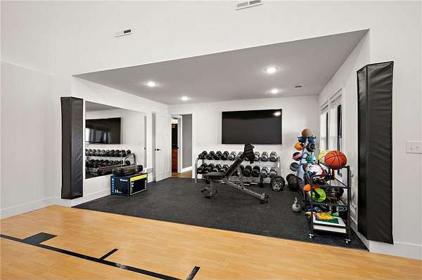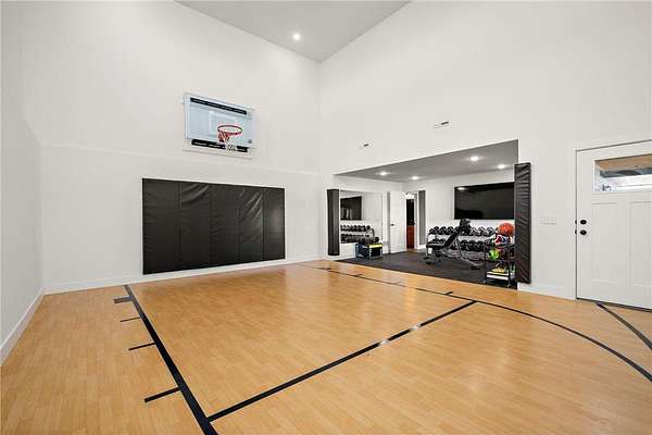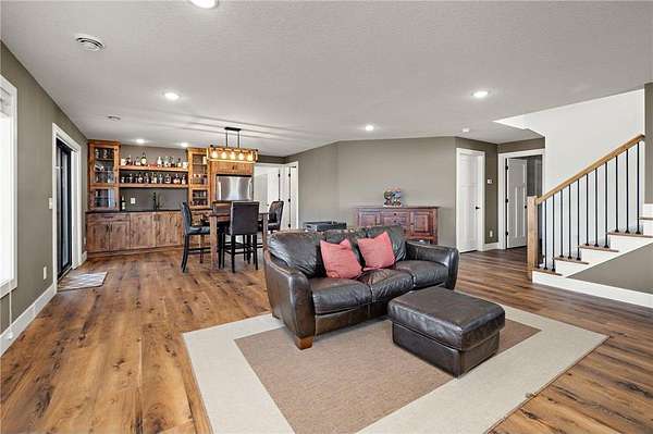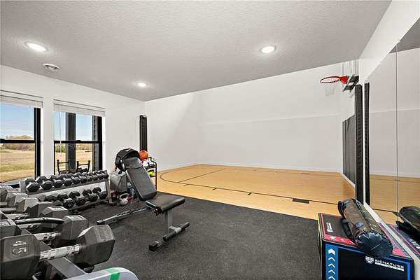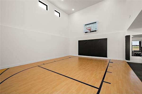 The fully finished walkout lower level brings it all home delivering a true lifestyle experience featuring a private recreation level with private sport court, home gym, radiant heated floors, sauna, and custom well-appointed bar, opening directly to the patio, firepit, and acreage beyond. Lower level family room, entertainment, and wet bar area. Attention to detail is found throughout with custom woodwork and designer window treatments, landscaping and irrigation in place. Plenty of space for cars and projects with the attached 4 car garage and additional detached 2-car garage.