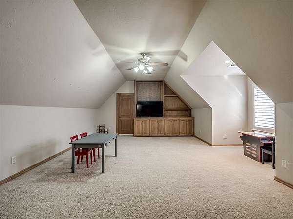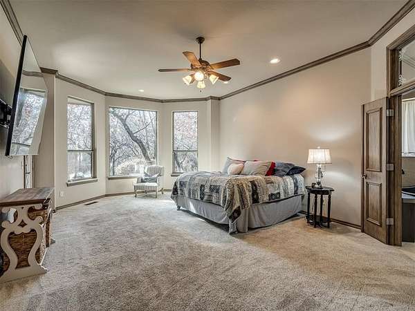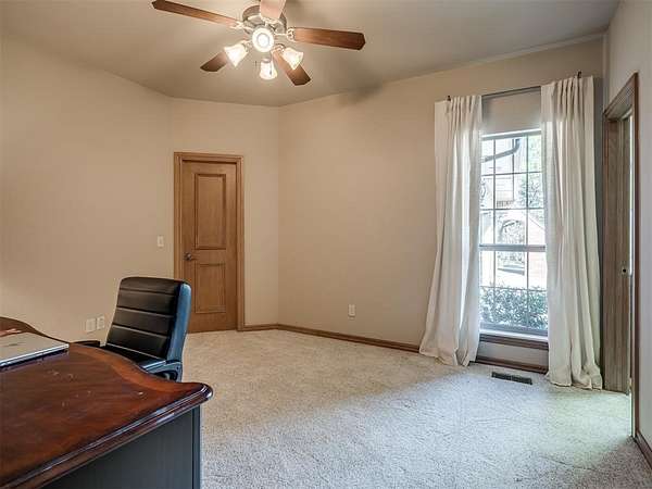 Welcome to your personal oasis! This place has it ALL! Sitting on over 4.3 wooded acres this home feels very private and secluded, yet it's close to I-35 and all the amenities Edmond has to offer. There are 4 bedrooms, all of which are connected to a bathroom, there's also a separate office, a formal dining room, an upstairs bonus room with a full bathroom connected and even an additional separate space that could be used as a hobby room. There is a beautiful view outside every window in the house. The living room has a vaulted ceiling with wood beam accents and floor to ceiling windows showcasing the absolutely amazing backyard! Under the enormous covered back patio is a gorgeous stone fireplace. There is an outdoor kitchen and dining space next to the picture-perfect pool and spa which overlooks the beautiful, wooded backyard. The oversized three car garage has insulated garage doors and a storm shelter in the floor. This property is an absolute MUST SEE, located in the serene gated Tanglevine neighborhood.