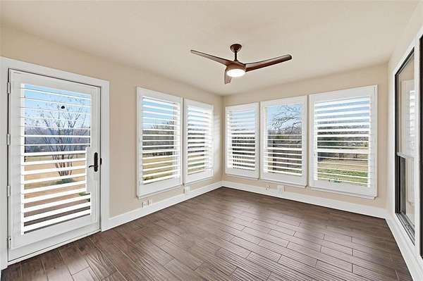 Welcome to a one-of-a-kind executive estate, gracefully sited on three acres, free from city taxes. As you approach, the gated circular drive hints at the grandeur within, while the porte cochere offers a dramatic and convenient entrance for guests and residents alike.Step inside to discover a spacious, light-filled foyer that opens into formal living and dining spaces, ideal for hosting elegant gatherings or intimate family dinners. Oversized windows throughout the living area frame picturesque views of the backyard, bathing the rooms in natural light and creating a seamless connection to the outdoors. A cozy wood-burning fireplace anchors the living room, providing warmth and ambiance on cool evenings.The gourmet kitchen is a chefs delight, boasting rustic, Tuscan-inspired brick accents that surround the cooking area. The kitchen features a generous island, marble countertops, stainless steel appliances,breakfast bar for casual dining, & sunlit eating nook.Primary suite is a true sanctuary,featuring double-sided fireplace that flickers between the bedroom & spa-inspired ensuite bath. Unwind in the deep soaking tub or refresh in the oversized glass-enclosed shower. Dual vanities & ample storage complete this luxurious retreat.Three additional bedrooms ensure space for family and guests, while Jack-and-Jill bath provides accessibility & privacy. The expansive family room is designed for memorable moments, omplete with a built-in wet bar, abundant windows, & direct access to the outdoor living spaces. Step out to the sparkling play pool and shaded patio—perfect for summer parties or relaxing afternoons.Equestrians & hobbyists will appreciate the separate barn, thoughtfully equipped with seven roll-up bay doors for access and two stalls for horses. The attached carport offers ample room for boats, recreational vehicles, or equipment. The estate is cross-fenced with durable pipe fencing. Experience refined country living at its best—this showpiece estate is a must-see!