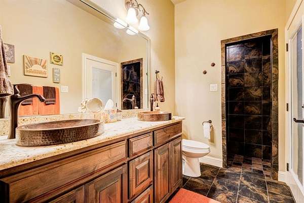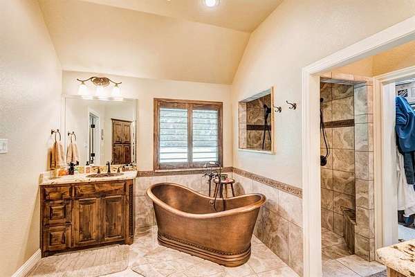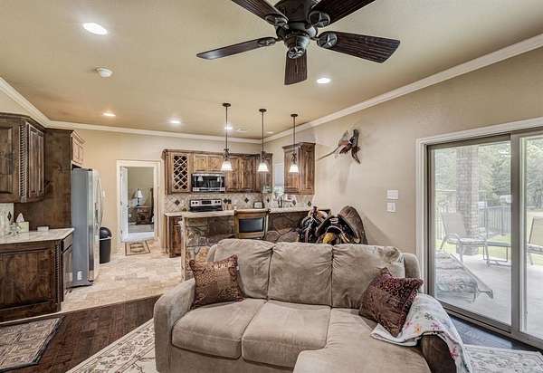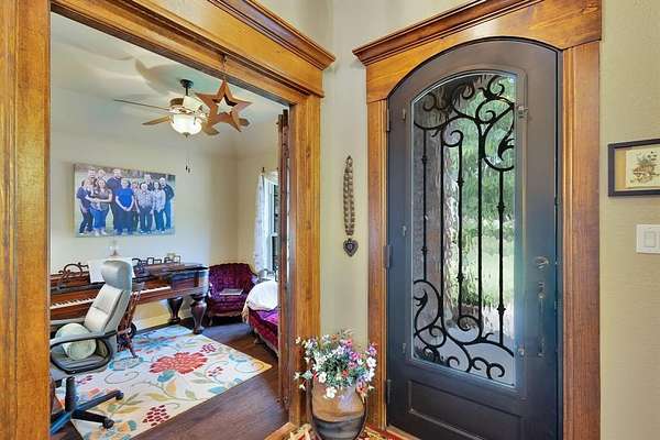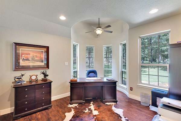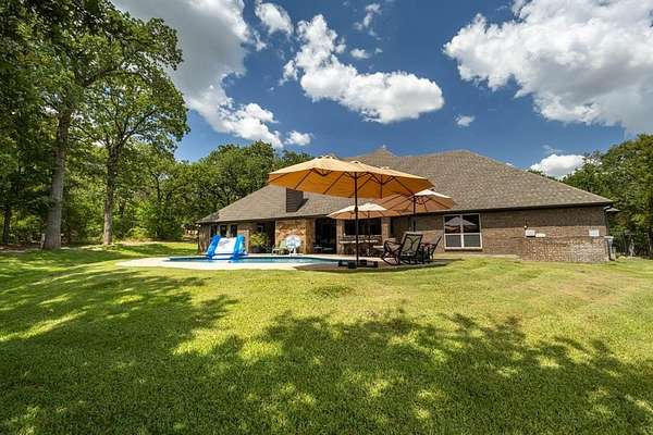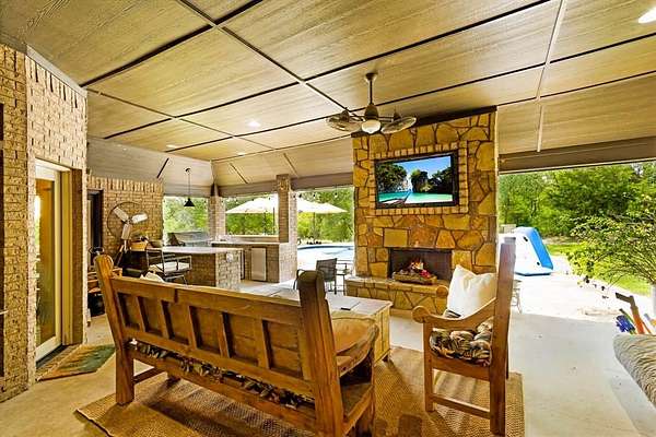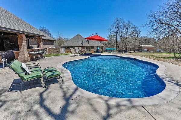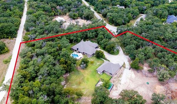 Nestled in the Hilltop of Ft Worth, is this One-of-a-Kind Gem! This one owner, 10-acre ranch home features 4 bedrooms with built in wooden shutters, office with walk in safe room, media room, 3.5 baths, 2 car garage. a bath rm leading to the pool area. Every detail of this custom-built home was meticulously thought out and built with exquisite craftsmanship beginning with the floors, the hand-crafted doors to the beams on the ceiling and many more details throughout. The open floor living space flows seamlessly offering endless entertaining opportunities. The chef's kitchen and large granite island is perfectly designed for your entertainment taste. From the kitchen to the living area, where the large sliding doors open fully and lead you to the outside covered patio and the gunite pool. The large covered back patio, offers a beautiful stone fireplace, outdoor kitchen with bar offering plenty of sitting area for entertaining - or- simply a great spot to savor the beauty of the country sunrises and stunning sunsets. The large primary suite offers an oversized custom walk-in closet, a beautiful free standing soaking tub, separate shower and a private door leading out to the covered patio and pool area. Adjacent to the main property sits a 859 sqft (included into SqFt, Living Area) guest house offers a full kitchen, 1 bdrm, 1 bath, WB fireplace and a 3-car garage. This ranch is a true escape from the city life and the perfect place to call home. Just located 20 Minutes to Dtwn Ft Worth and 50 min to Dallas! This listing is currently AG Exempt and sits outside the city limits, main house and guest home (sit on 2 acres) and an additional 8 acres - is completely fenced for livestock (Parcel IDS- 41654935 and 41717341) COME SEE this well-maintained property! Owner will N0T subdivide. Additional 5 acres is available adjacent to the property that is fully fenced and includes a 5 stall horse barn-- see MLS# 21037173