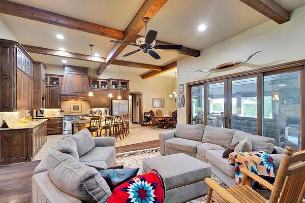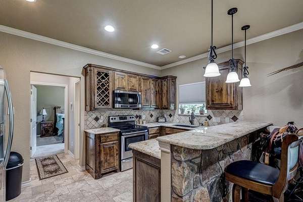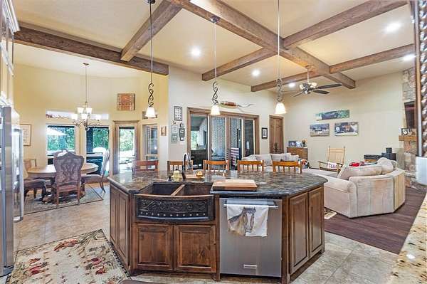 - Built-In Features, Cable TV Available, Chandelier, Decorative Lighting, Dry Bar, Eat-In Kitchen, Granite Counters, Kitchen Island, Open Floorplan, Pantry, Vaulted Ceiling(s), Walk-In Closet(s)