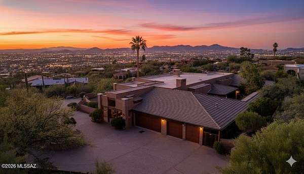 Perched atop prestigious Cobblestone Drive, this exceptional estate formally known as The Coors Estate sits on a rare almost 2-acre double lot, offering privacy, panoramic views, and an expansive one level footprint designed for both entertaining and everyday living. The 7,277 sqft residence showcases timeless architecture and commercial-grade steel l-beam construction & copper accents. Designed for seamless indoor-outdoor living, the home features an extensive covered patio system (3773 sf) ideal for entertaining or enjoying Tucson's sunsets year-round. A unique highlight is the indoor pool with heating and cooling, creating a private retreat that can be enjoyed in every season. Located in highly desirable Catalina Foothills with easy access to fine dining, shopping and outdoor recreation, this estate presents a rare opportunity to own a timeless property with remarkable presence and unmatched potential!