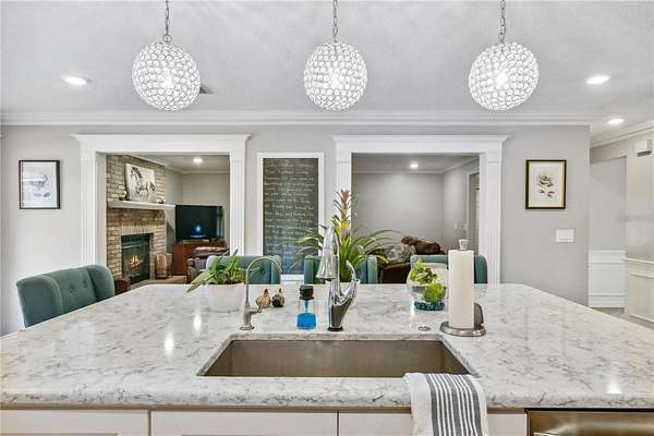 - Built-In Features, Ceiling Fans(s), Kitchen/Family Room Combo, Solid Surface Counters, Solid Wood Cabinets, Split Bedroom, Stone Counters, Walk-In Closet(s), Window Treatments