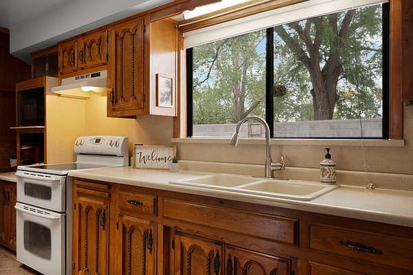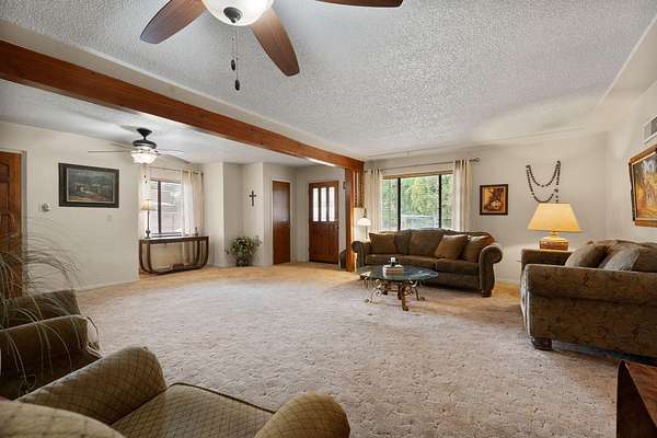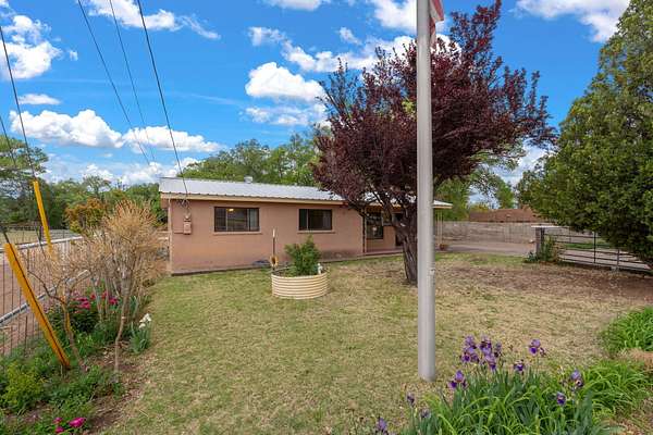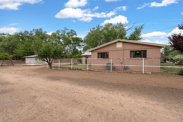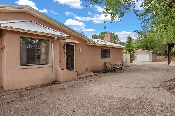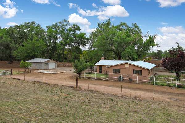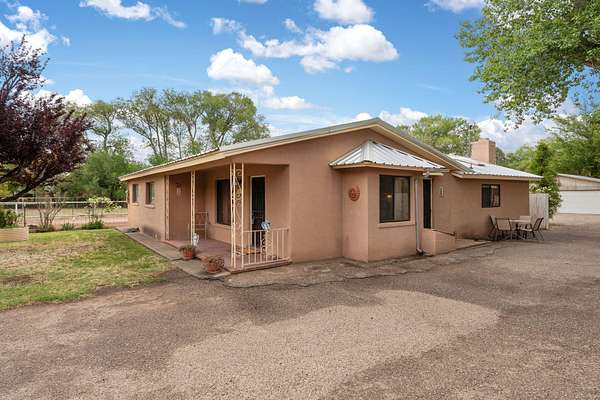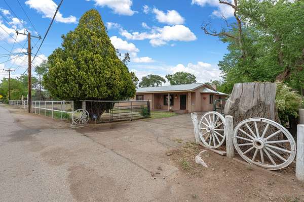 Combining two adjacent lots totaling 1.64 acres! Tucked beneath the cottonwoods along one of the North Valley's most scenic roads, this well maintained adobe home offers charm in the heart of Los Ranchos. With a metal, pro-panel roof & elastomeric stucco this home blends classic Northern New Mexican style w/ pride of ownership throughout. Inviting, open eat-in kitchen w/ wood-burning stove. Natural light pours in through the windows in each of the generously sized bedrooms. The location & grounds are magical- sitting adjacent to the Chamisal irrigation ditch, this serene property has a detached garage & plenty of space for a new buyer to make it their own. This is a rare opportunity to purchase an original-owner home with acreage in this incredible setting! Schedule your showing today!