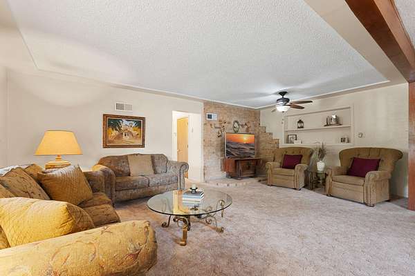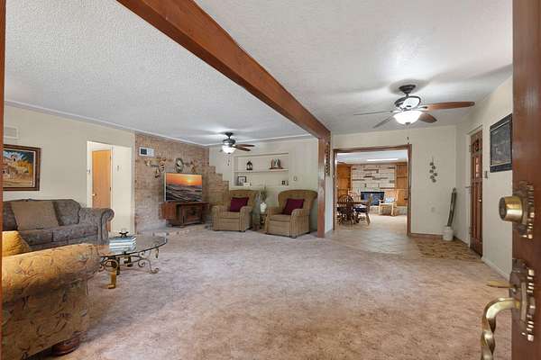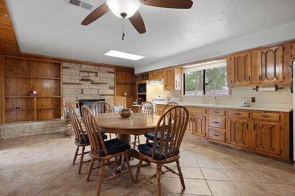 - Bookcases, Cable TV, Ceiling Fans, Country Kitchen, Family Dining Room, Fireplace, Living Dining Room, Main Level Primary, Pantry, Skylights