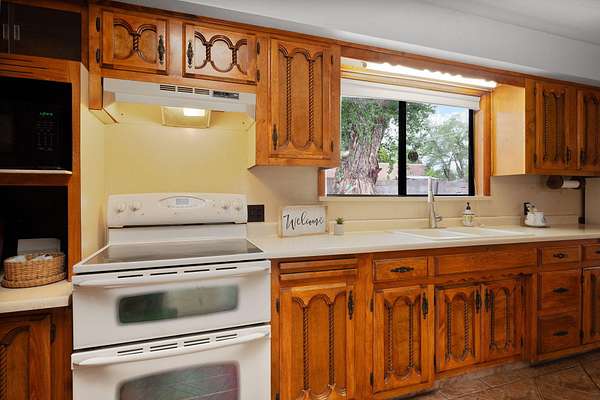 From 2nd St NW and Los Ranchos Rd NW: West on Los Ranchos to Guadalupe Trail NW. Left on Guadalupe Trail to home on left.