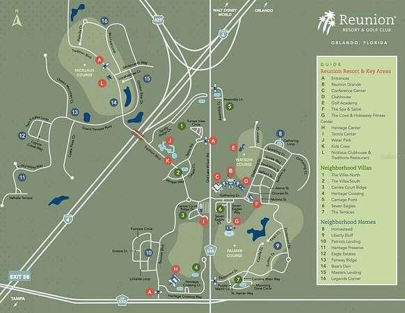 Exit 58, east on Osceola Polk Line Rd. Left on Reunion Blvd. At the rounabout, take exit to Reunion Blvd., Right on Excitement, right on Sparkling Ct. Lot is last lot on right before the orange house.