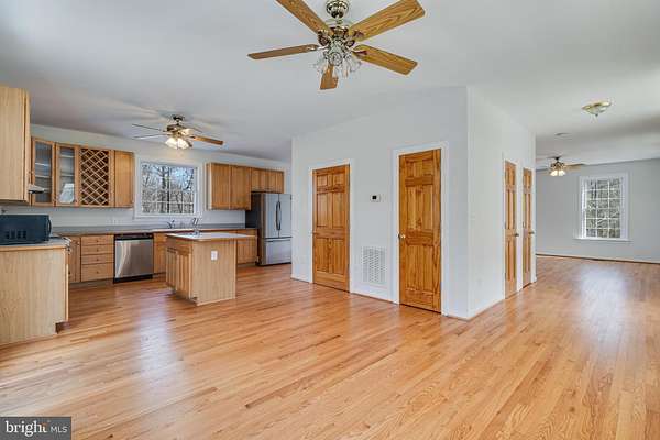 - Ceiling Fan(s), Combination Kitchen/Dining, Dining Area, Eat-In Kitchen, Family Room Off Kitchen, Island Kitchen, Table Space Kitchen, Wood Floors