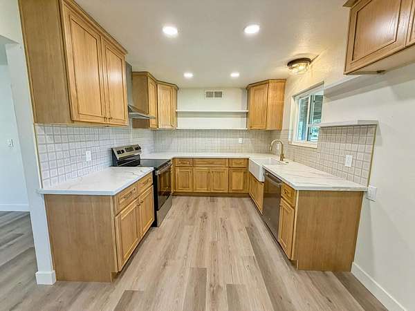 If you have ever dreamed of sitting on a covered porch, watching the wind blow by, be sure and check out this turnkey, fully remodeled 4 bed 2 bath Clovis country estate. This home is on 2.5 acres in Clovis Unified, nearby Clovis Community Hospital, and Highway 168 access. Home has been fully renovated from top to bottom, offering an oversized living room, complete with a separate den, brand new kitchen, and tons of room for the whole family. This property was in the same family for decades, and now is ready to build your family's core memories. Imagine summers watching the sun rise over the sierras, and late nights staring at the stars. If you have dreamed of a just a little bit more property, but still being close to the modern convinces of town, this is it! Inside you will find 4 large bedrooms, two living rooms, ample natural light, and so much moe! The perfect rectangle lot is blank canvas for all of your hobby farm, shop, or even ADU needs! And dont worry, the well, HVAC, roof, and windows are all newer as well. We even have solar with battery back up! Contact your favorite realtor for a private showing today!
