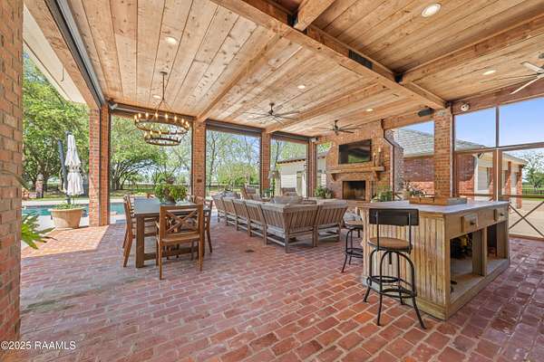 Welcome to this stunning southern estate, where luxury and timeless charm blend seamlessly across 13.97 acres of unmatched grounds. The custom built main residence is a spacious 8,600 sq.ft. of interiors, and features six bedrooms and six bathrooms. Designed for both comfort and entertaining, the home includes an expansive, premium grade kitchen centered around an oversized island, wine cellar, several dining spaces, a main living room with towering ceilings, an additional living room on the second floor, and a home gym. The primary suite is simply beautiful with a spa inspired bathroom, its own laundry room/coffee bar, and opens onto a private screened-in porch. The custom mill work in every room, solid pine wood floors, and the two interior fireplaces add warmth throughout. The impeccable views from every window invite you outside to the back porch, which features an outdoor kitchen, large fireplace and retractable screens that allow the space to easily be transformed into a screened-in porch. The porch is overlooking the picturesque, swimming pool surrounded by travertine tile, hot tub, gas fire pit, and turfed putting green. All of these amenities and more, make this outdoor space the perfect place to gather with family and friends. The property's flourishing live oak trees and pecan orchard provide shade, beauty, and charm throughout the grounds. There are two ponds. A cypress pond with breathtaking sunset views, and a fully stocked pond ideal for fishing. A newly renovated cottage provides a private retreat for guests with an open layout, a loft and one bathroom. The property includes a horse barn equipped with stalls, a well maintained horse arena, garden and green house, along with a chicken coop. The estate is fully enclosed and secured with livestock fencing. This beautiful, extraordinary estate is truly the perfect southern retreat and a remarkable opportunity not to be missed.