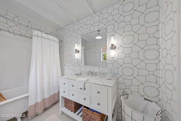 - 9+ ft Ceiling, Beamed Ceilings, Bookcases, Built-Ins, Cathedral Ceiling, Crown Molding, Double Vanity, Dual Closets, Electric Dryer Con, Electric Washer Con, Gas Dryer Con, Gas Stove Con, Guest Suite, Kitchen Island, Office, Primary Bath, Separate Shower, Standalone Tub, Varied Ceiling Heights, Vaulted Ceilings, Walk-In Closet(s)