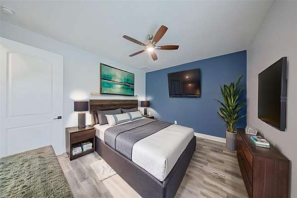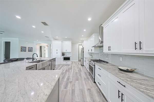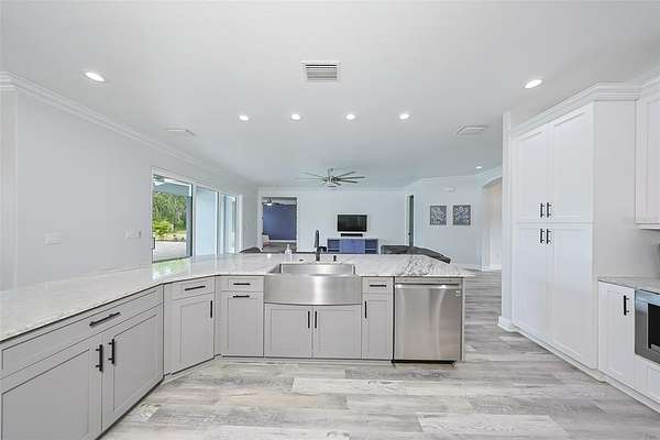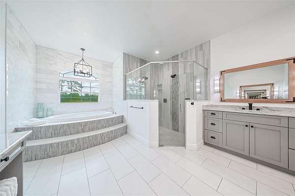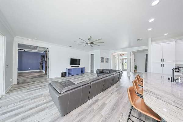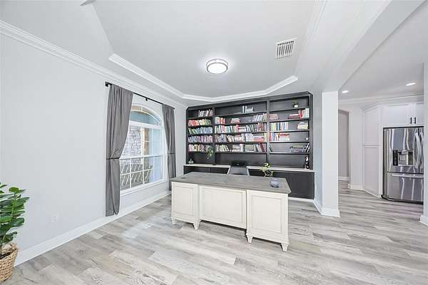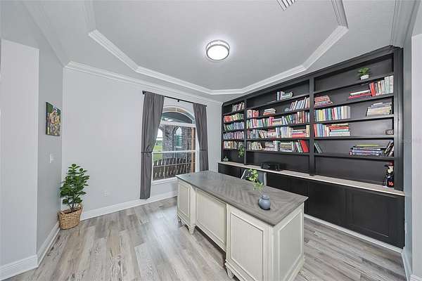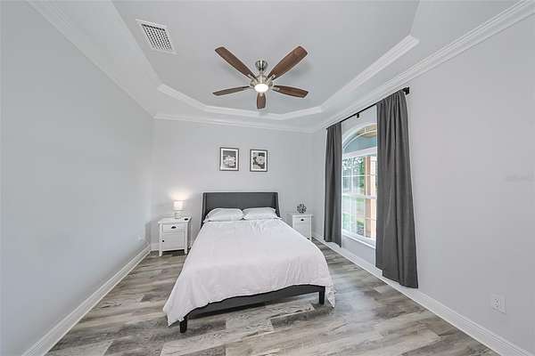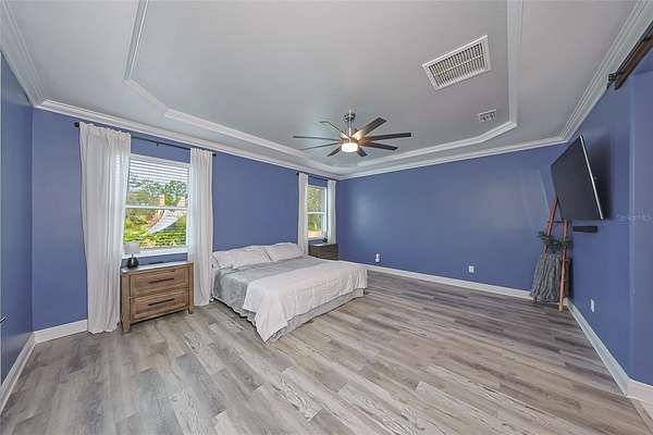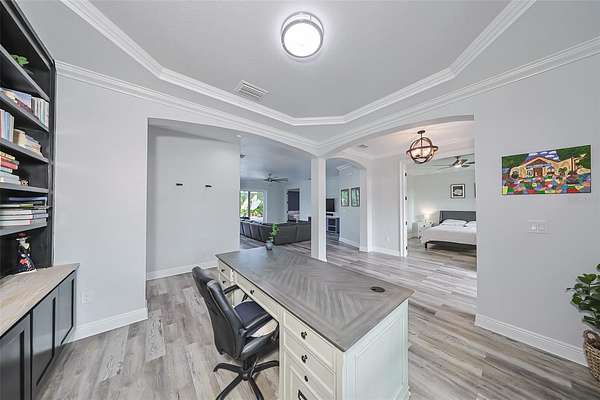 - Ceiling Fans(s), Crown Molding, Eat-In Kitchen, High Ceilings, Open Floorplan, Split Bedroom, Stone Counters, Tray Ceiling(s), Walk-In Closet(s)