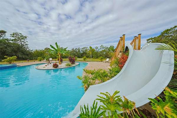Under contract-accepting backup offers. City-Close, Country-Quiet! NO HOA, CDD or required flood insurance. Experience the perfect blend of privacy, space, and resort-style living on 4.68 acres just minutes from Lakewood Ranch and I-75. At the heart of this exceptional property lies a breathtaking, custom designed GAS HEATED resort-style pool added in 2023, complete with a functioning lazy river, a 12-person spa, an island, a waterslide, and an expansive patio area. Your own private escape, crafted for both relaxation and entertainment. This beautifully designed retreat features a custom-built home offering 2,998 sq ft of thoughtfully planned living space, including an open floor plan, a formal dining area, 3 bedrooms, 2.5 baths, and a versatile flex room ideal for a home office or fourth bedroom. Inside, enjoy 9'4" ceilings with tray accents, elegant crown molding, granite countertops, and custom wood cabinetry throughout. The chef's kitchen is equipped with stainless steel appliances, a gas range, a spacious island, a cozy breakfast nook, and a generous walk-in pantry. The primary suite offers a true spa-like experience, featuring two separate walk-in closets, dual vanities, a walk-in shower, a garden tub, and private access to the pool area. Secondary bedrooms are located on the opposite side of the home, ensuring privacy with convenient access to a full bath. Designed with both comfort and durability in mind, the home includes hurricane shutters, a tankless water heater, energy-efficient LED lighting, an inside laundry room with washer and gas dryer hookups, septic and well (no water bills to worry about). With ample room for animals, gardening, or outdoor recreation, this property offers a rare combination of luxurious living and wide-open freedom. Enjoy the convenience of nearby schools, shopping, dining, hospitals and more. Commuting is effortless with easy access to SR-64, SR-70, I-75, Lakewood Ranch, Bradenton, Sarasota, Sarasota International Airport, and Florida's world-famous Gulf beaches. This is more than just a home... it's a lifestyle. Call today to schedule your private tour!