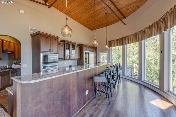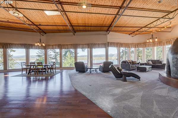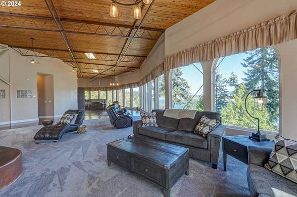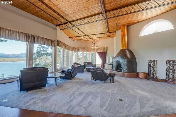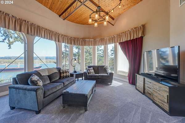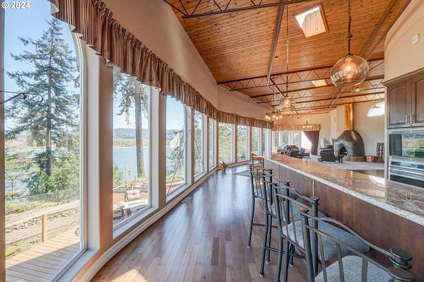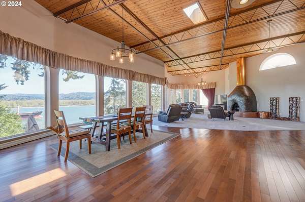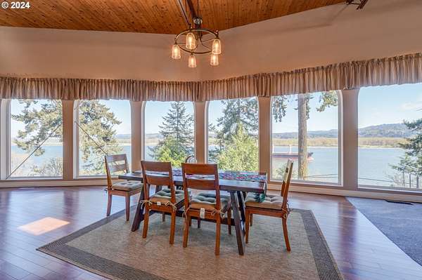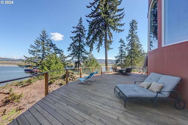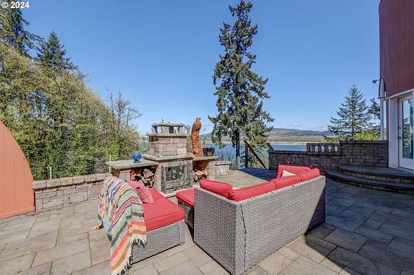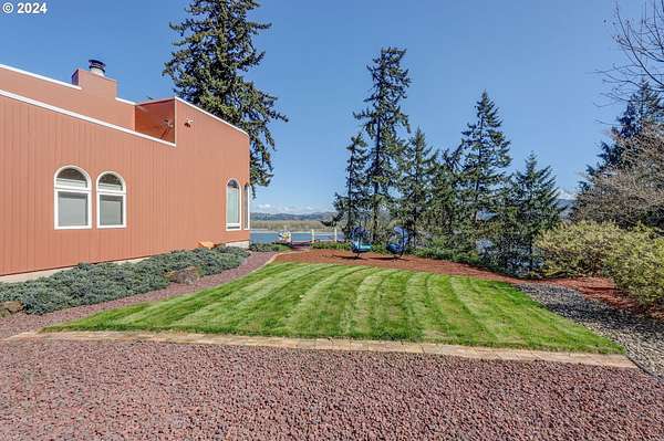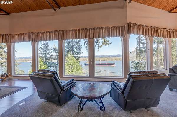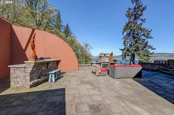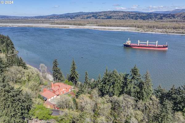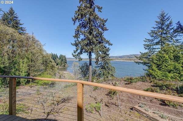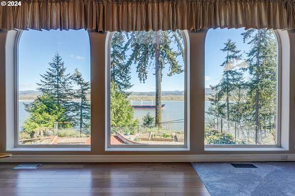 This private river front property on 4.35 acres is a slice of paradise! With beautiful views of the Columbia River, 20 windows, each an impressive 9 feet tall, provides breathtaking views that truly defines estate living. This custom designed open concept house seamlessly integrates the spacious interior by letting the outdoors in, offering views of trees and the river from every angle. The culinary enthusiast will delight in the well designed kitchen featuring Sub-Zero built-in refrigerator with a wine cooler, high-end Wolf appliances and eat bar ensuring both functionality and style. The spacious primary bedroom offers 2 closets, its own fireplace, a luxurious bathroom and a door to the oasis on the patio. This property has undergone a series of new improvements and additions, including an approximate 576 square foot non- conforming 4 bedroom (non-conforming)/Flex room perfect for guests or extended family members that want comfort and privacy. The outdoor living area has been transformed into a $60,000 retreat, complete with a fabulous stone tower housing a built-in electric BBQ and separate wood-burning fireplace, ideal for dining and entertaining against the backdrop of the scenic riverfront. The expansive deck lines the back that adds to this home's many options of tranquil living. The exterior has been meticulously attended to, with new landscaping in the front yard, fresh exterior paint, a $100,000 investment in a new roof and gutters and the installation of a water softener/conditioner. There is also covered RV parking space. Less than an Hour to PDX and Astoria! Don't miss the opportunity to make this one-of-a-kind treasure your own! Go to attachment for list of improvements.