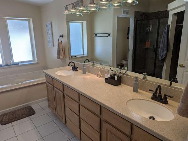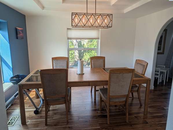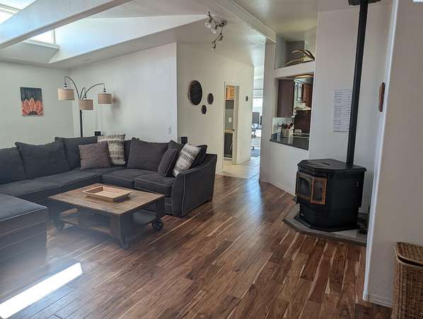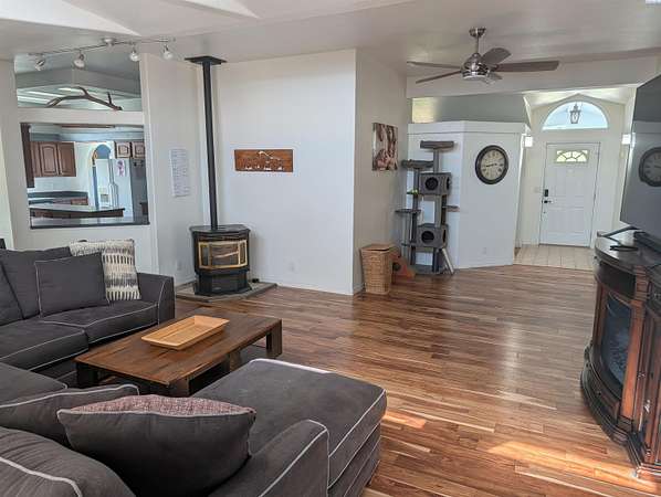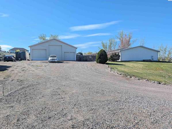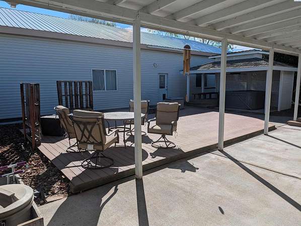 If you need serious shop space inside the city, this property delivers—featuring a massive 40’ x 82’ stick-built shop (approx. 3,280 sq ft) with RV parking, extensive storage, and flexible workspace options. The shop includes 3 bays, one large enough for a 42’ RV with water, 30-amp hookup, and an RV dump inside. Additional features include an office with half bath, bar area, mezzanine storage, clean room, and a large workshop area. High ceilings and wide-open bays accommodate oversized equipment, multiple vehicles, or business use. Above the shop, a fully heated and cooled 1,100 sq ft flex space expands the possibilities—ideal for a game room, studio, guest space, or potential separate living quarters. The home sits on nearly 3 acres within city limits, a rare combination offering space with in-town convenience. Close to shopping, schools, and services while still maintaining privacy and separation from neighbors. Inside, you’ll find 3 bedrooms plus an office, 3 bathrooms, a dining room, and a separate family room with vaulted ceilings and transom windows bringing in natural light throughout the day. The layout provides separation between living and sleeping areas for comfort and functionality. The kitchen is designed for gathering with a large island, solid surface countertops, rich cabinetry, and an oversized walk-in pantry. Ample storage and counter space make it practical for everyday living or entertaining. The master suite offers a sitting area perfect for an office or workout space, along with a private bath featuring dual sinks, soaking tub, separate shower, and walk-in closet. Outdoor living includes a covered patio, open entertaining areas, fire pit space, and a gazebo-covered hot tub, creating multiple zones for relaxation and gatherings. Additional features include a paved circular driveway for easy access and parking, a covered 4-car carport, fenced yard, and usable acreage with room for animals, hobbies, or agricultural use such as a small vineyard. Acreage within the city is increasingly rare. This property delivers space, function, and opportunity in one exceptional package.