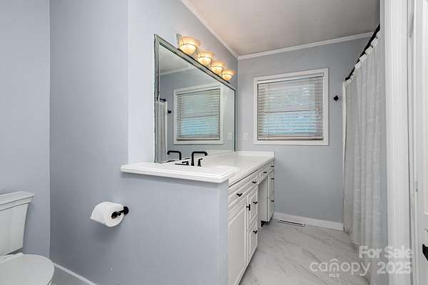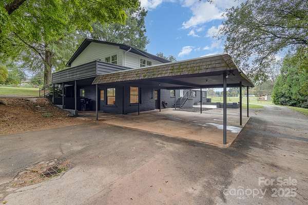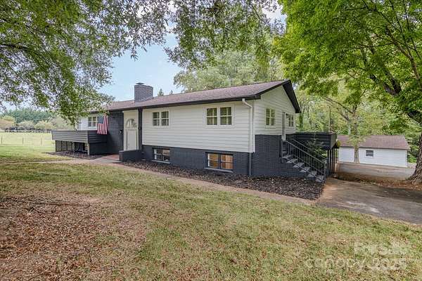 Discover this spacious 1960s split-level home on a beautiful 4-acre property in Denver, NC. Originally designed with convenience in mind, the home features a unique elevator in the stairwell, providing easy access between levels. Both levels have similar layouts, offering flexibility for various living arrangements. The current owner has completed the initial renovations, removing all outdated wall paneling, beautifully updating the kitchen and new flooring on the main level. Plus, the basement has just undergone a complete remodel, making this home ready for your finishing touches and customization. Outside, enjoy the convenience of an attached two-car carport and a detached two-car garage.