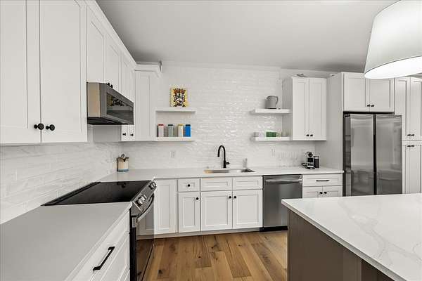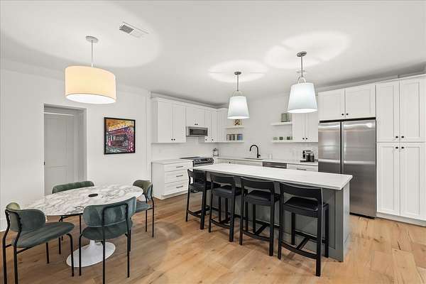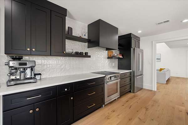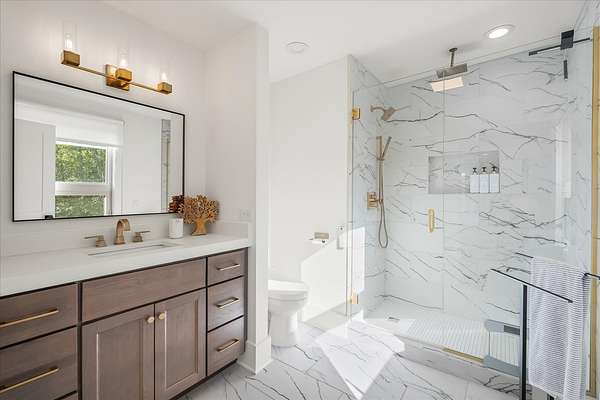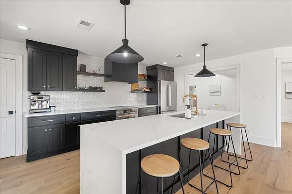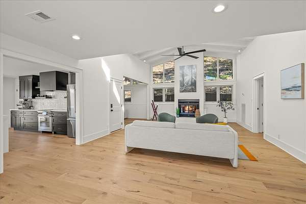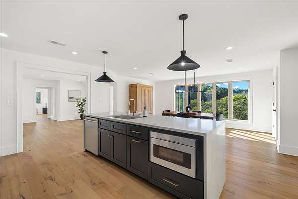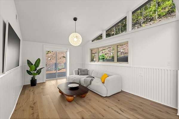 This lovely modern home was beautifully remodeled in 2023 with designer finishes. The split level home includes all new windows throughout and stunning 6 inch wide plank hardwood floors which showcases a fresh, bright and contemporary feel. Entertain your guests in this designer kitchen featuring a quartz waterfall island, Bosch appliances. The primary bedroom with stunning view includes large walk in closet and beautiful primary bathroom suite. Guest suite on main level features lovely bath and plenty of closet space. Lower level flexible living space include an in-law suite or separate apartment with its own fully stocked kitchen and private entrance- excellent for extended family, guests, or rental income. Lower unit has 1 full bedroom suite and a second room with closet for office/yoga. All of this on 5 peaceful acres! Only 20 minutes from downtown Nashville, Vandy or Green Hills. This sale includes the 2 additional acre parcel owner purchased in 2024. Two car attached garage with new epoxy floors.
