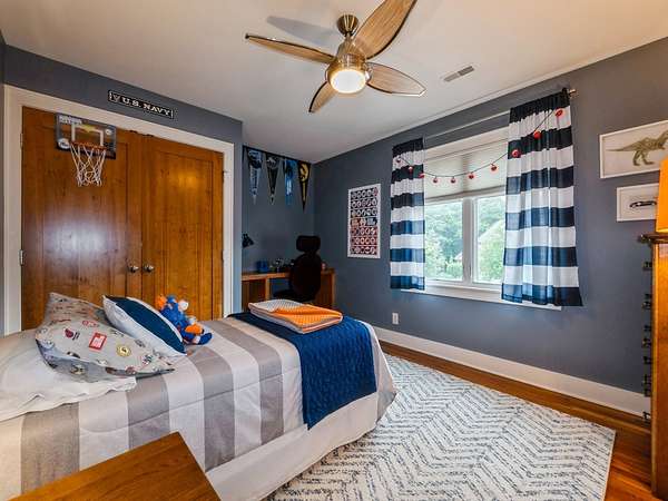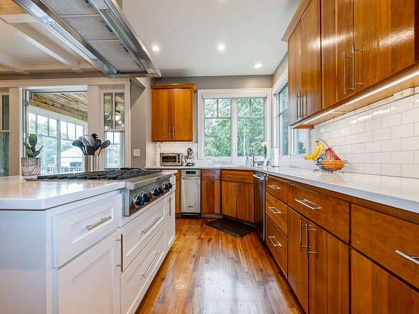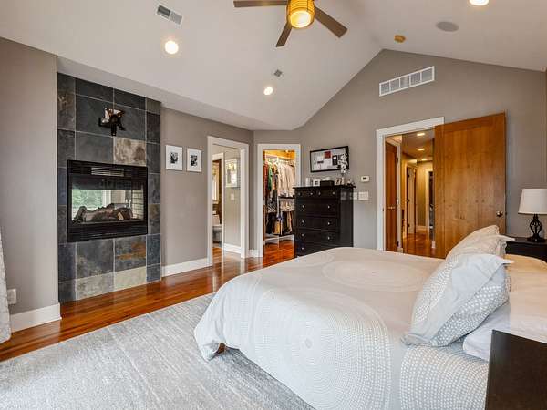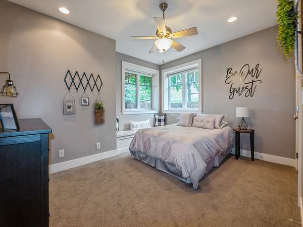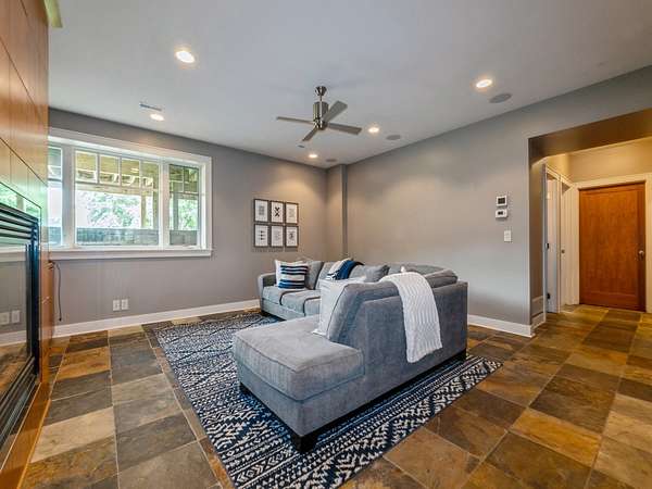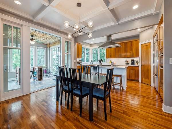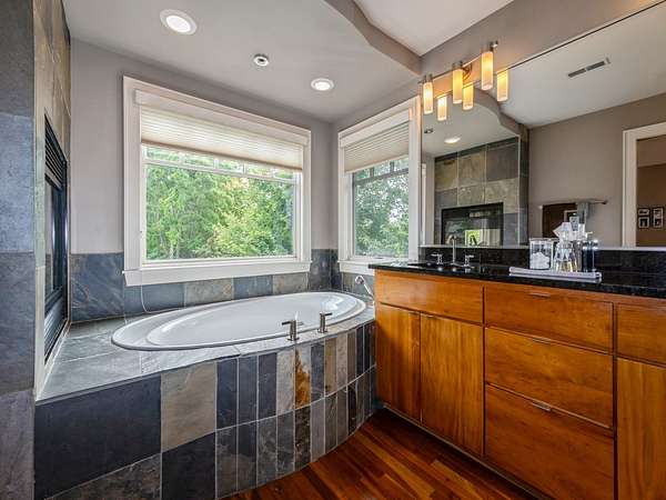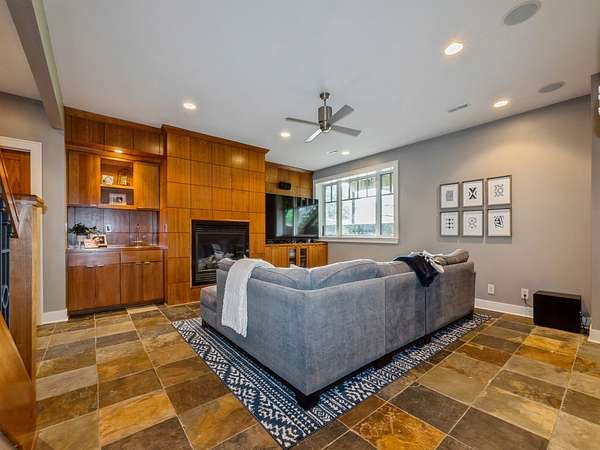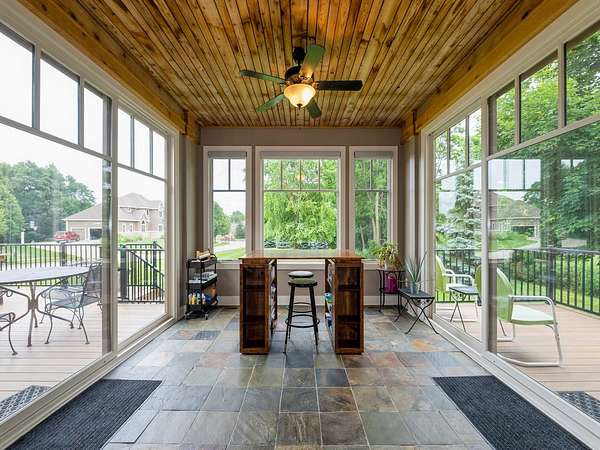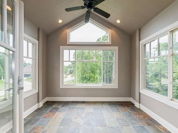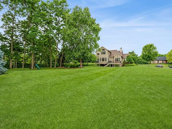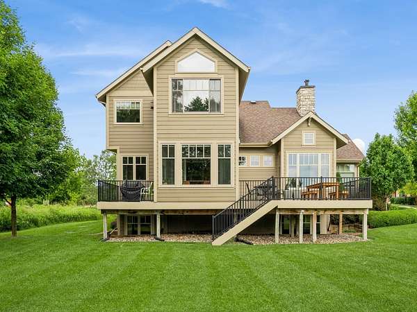 This home sits on 1.5 acres in a prime location just minutes from anywhere in the metro, offering space and privacy without giving up convenience. Inside, you'll be welcomed by soaring ceilings and a stunning stone fireplace in the family room, framed by Andersen E Series windows that flood the space with natural light. The open layout connects seamlessly to the remodeled kitchen (2020) featuring quartz countertops, custom cabinetry, upgraded stainless steel appliances, and a corner pantry. An adjoining 4-season sunroom provides panoramic views year-round and can serve as a den, library, or flexible living space. Upstairs you'll find four spacious bedrooms, including the primary suite with its own 4-season sitting area that doubles as a private office. Combined with another potential office space on the main level, this home offers two dedicated offices if desired. The luxurious primary bath includes a double-sided fireplace, soaking tub, walk-in shower, and dual vanities. The finished lower level adds a fifth bedroom, perfect for guests or extended family. Recent upgrades include a brand new geothermal heating and cooling system, bringing efficiency and comfort to every season.