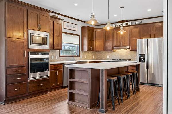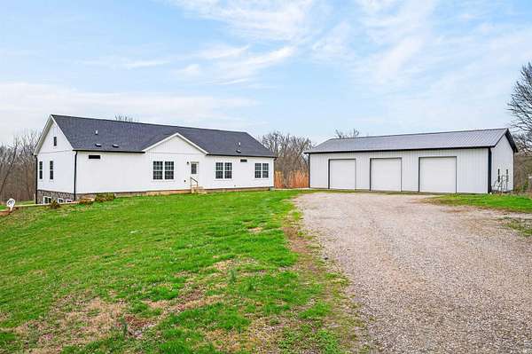 Ranch Home on 25+/- Acres in Greene County! Stunning Views and Spacious Outbuildings! Experience peaceful country living in this beautiful ranch home nestled on 25 acres in scenic Greene County. Built just a few years ago, this home combines modern design with open-concept living and a desirable split bedroom floor plan. Make sure and check out the spacious mud/ laundry room! The full, unfinished walkout basement provides endless potential, finish it for extra living space, a recreation area, or storage. Enjoy breathtaking views right from your kitchen and covered back porch, making every sunrise and sunset a highlight of your day. Property features include a 32x56 pole barn with concrete floors and three overhead doors-perfect for vehicles, equipment, or a workshop-as well as an additional 20x40 pole barn for even more storage or hobby space. With its combination of acreage, modern comfort, and unbeatable views, this property offers the ideal setting for both relaxation and recreation.