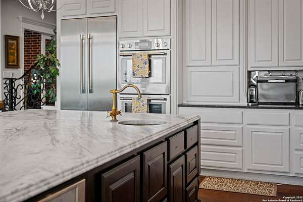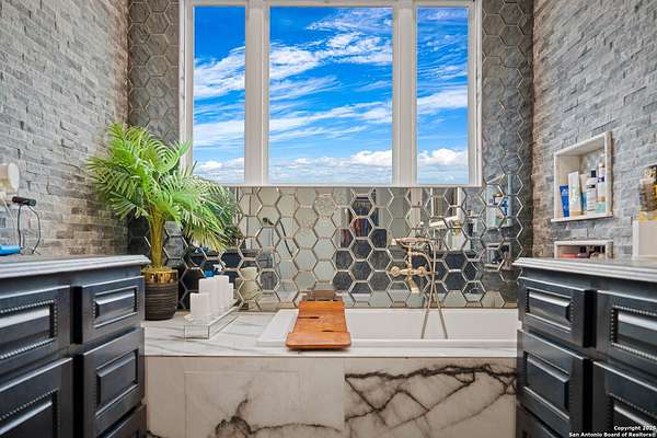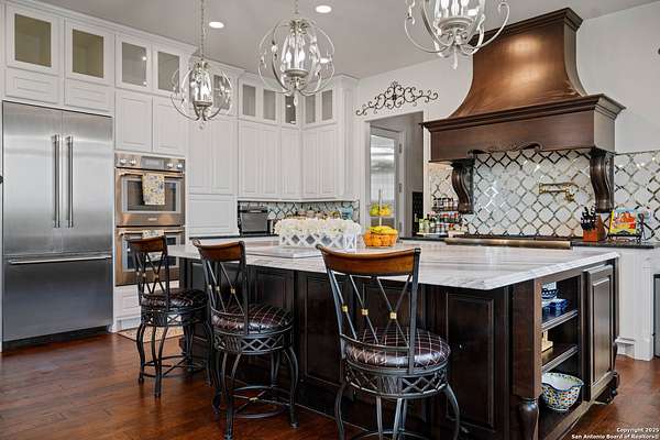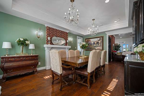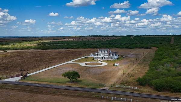 Experience timeless elegance in this stunning two-story Colonial estate, perfectly situated on 5 fully fenced acres. Offering up to 8 bedrooms and 5.5 bathrooms, this residence is ideal for multi-generational living, those who love to host in style, or possibly an event destination. Step into the grand foyer, where the formal dining room graces the left and the formal living room sits to the right-both featuring cozy fireplaces and custom built-ins. Beyond the main staircase, the Great Room beckons with its stately fireplace, built-in entertainment center, and a sophisticated wet bar. The chef's kitchen boasts high-end appliances, including a gas Thermador stove with pot-filler, double ovens, two dishwashers, a large island with prep sink, a farm sink, and a walk-in pantry. A beautiful Butler's Pantry connects to the dining room, while the adjoining keeping room offers a relaxed gathering space. Nearby, the mudroom-with built-in benches and storage, a powder room, and a dedicated dog-wash station-provides exceptional functionality. A spacious laundry room with abundant storage and a back staircase complete this wing of the home. The primary suite, located on the main floor, features a tray ceiling, crown molding, and two walk-in closets (one with a vanity). The spa-like primary bath includes separate sinks, a jetted soaking tub, walk-in shower with 3 digitally controlled shower heads, and water closet. A guest bedroom and full bath are also conveniently located on the first floor. Upstairs, you'll find two bedrooms with private en-suites, two bedrooms sharing a Jack & Jill bath, plus two additional rooms currently serving as a media room and craft room. A sunroom behind the Great Room offers sweeping views of the outdoor oasis, complete with a sparkling in-ground pool. A covered breezeway connects the home to the 3-car garage, which includes a fully floored attic for storage accessed by a permanent staircase. The 3rd floor attic of the house is also floored for more storage and accessed by a full staircase. Beyond the garage is a 320+/- sqft, air-conditioned storage building, livestock shed and pen. Additional features include high ceilings, wood floors, marble and granite countertops, chandeliers, ceiling fans, walk-in closets, 2 tankless water heaters, 3 HVAC units, water softener, and dual tank aerobic septic system. Outside, the homes elegance starts at the gated, brick front entrance with controlled access and continues up the concrete drive and large circular driveway. This exceptional property blends traditional charm, luxurious finishes, and thoughtful amenities-all within a serene, private setting.