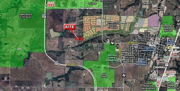 Incredibly located 10-acre parcel on Future Legacy Drive, with Dallas North Tollway less than a mile to the West and FM 455 less than a mile to the East. This property is outside city limits and does not have a pre-annexation agreement in place with the City of Celina, making this parcel a rare find with significant potential. The property is adjacent to the future Uptown Celina, a 700-acre master planned development with 2,800 single family homes and 1,100 multifamily units planned and immediately South of J Fred Smith Parkway, which will be home to a future H-E-B site and full diamond exit from the Dallas North Tollway. The site is within a mile of 12,000 new residential lots including 7,200 lots in the master planned community of Legacy Hills just to the North.