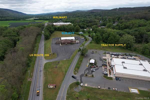 Development opportunity in high traffic, high visibility location offers endless possibilities. With favorable Mixed-Use zoning and this premium location your search stops here (zoning attached in docs). Straddled between Walmart and Tractor Supply this 5.9 acre parcel is ripe for development. Convert the existing 6000+ SF structure to suit your needs or start from scratch. Great location for mini-mall, strip mall, grocery chain, gas station, financial services, day care, school, retail box store, medical facility, professional offices, brewery, distillery, storage facility and more! Frontage on two roads offers exceptional access for trucks and deliveries and makes it suitable for more than one venture. There is 1200+ feet of exposure directly on US Route 209 and 1100+ feet on Old Route 209. Most of the lot is level and paved allowing extensive space for parking. The building's previous use was restaurant, bar and catering facility and equipment is intact. There are storage pods on the property as well as an event tent that holds 500 people! Unsurpassed potential with municipal water and sewer.